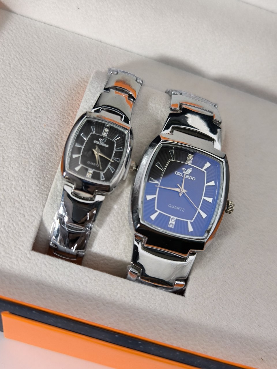 ست ساعت مچی زنانه و مردانه اورلیندو با طراحی صفحه مستطیلی جذاب و بند استیل رنگ ثابت ضد خش انتخابی شیک و بادوام برای زوجهای خوشسلیقه است این مدل با موتور کوارتز دقیق و قفل مخفی ضامندار راحتی و امنیت را در کنار زیبایی فراهم میکند کاملاً ضد آب بوده و همراه با جعبه هدیه شکیل از فروشگاه اینترنتی روبی مد عرضه میشود تا تجربهای خاص و ماندگار را برای شما رقم بزند.