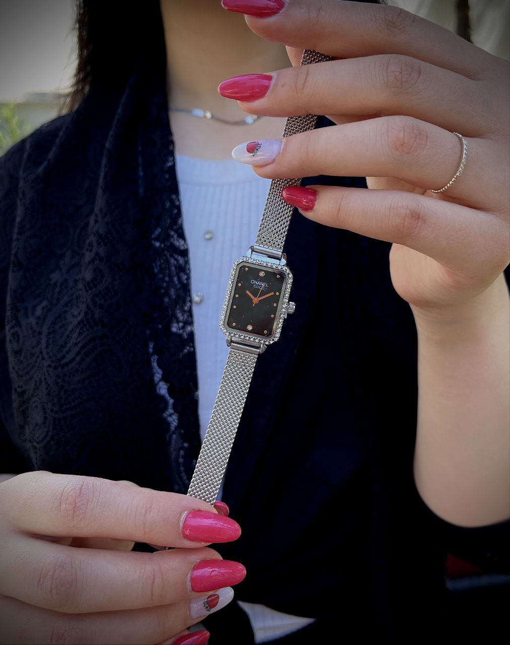 ساعت مچی زنانه شنل بوردو Chanel بند استیل بافت