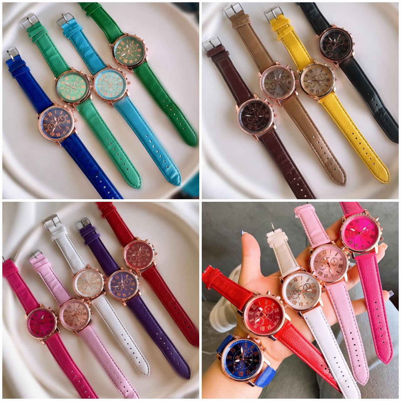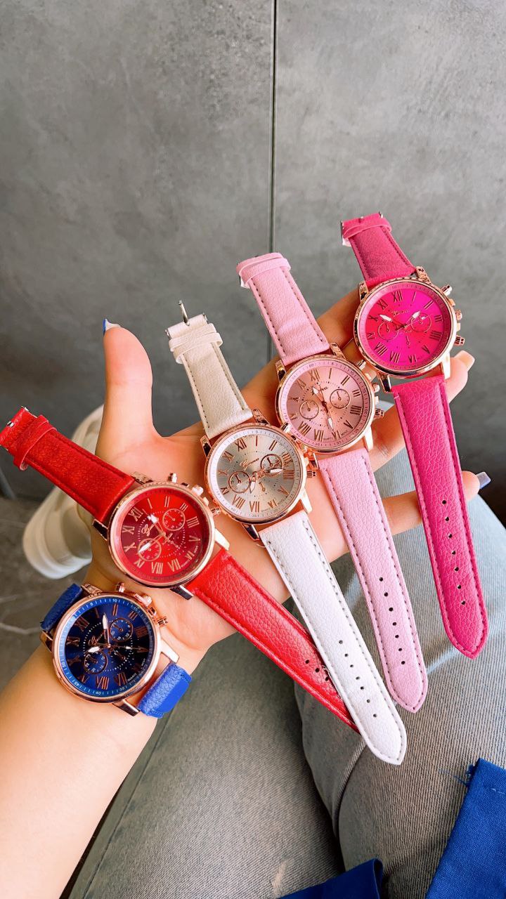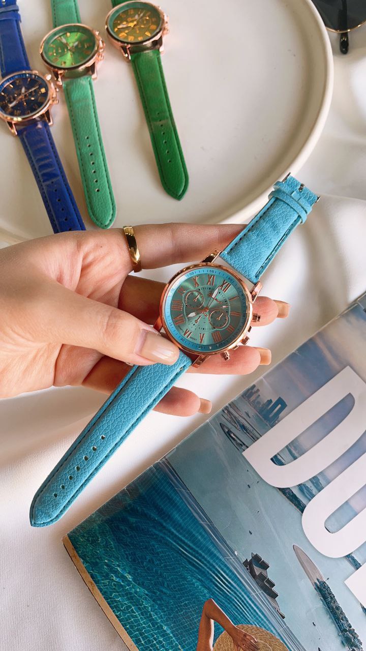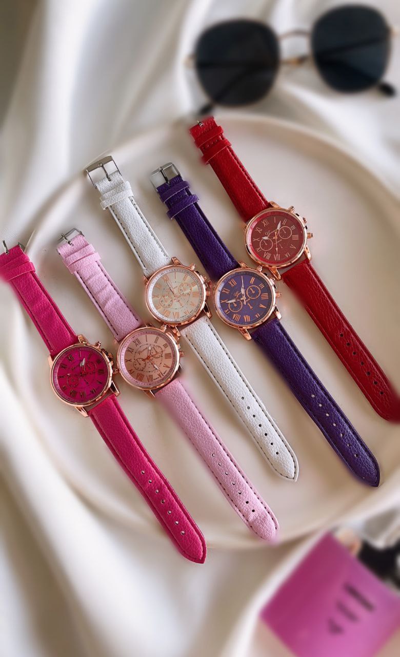 ساعت مچی دخترانه جینوا Geneva بند چرم رنگ بندی