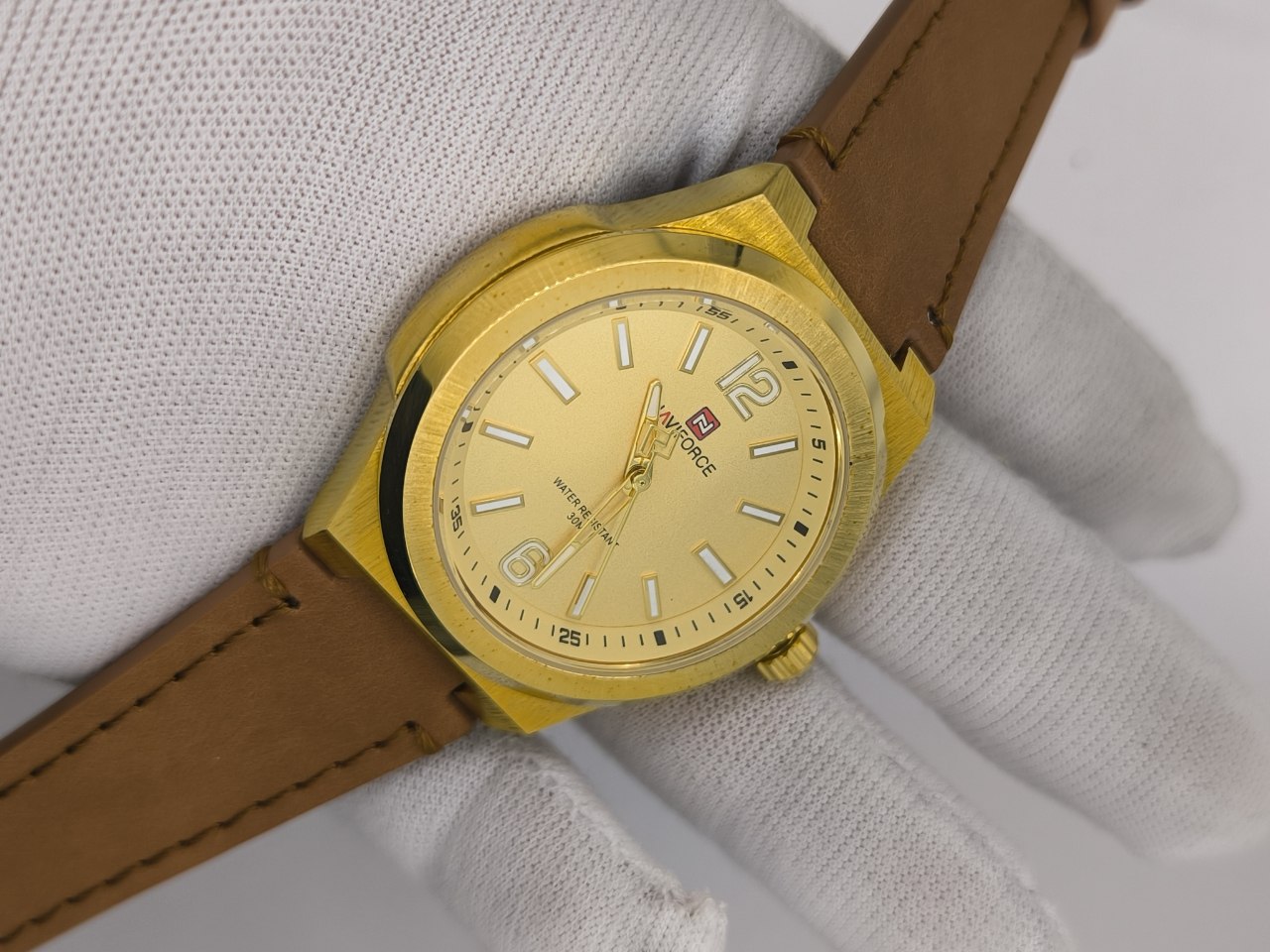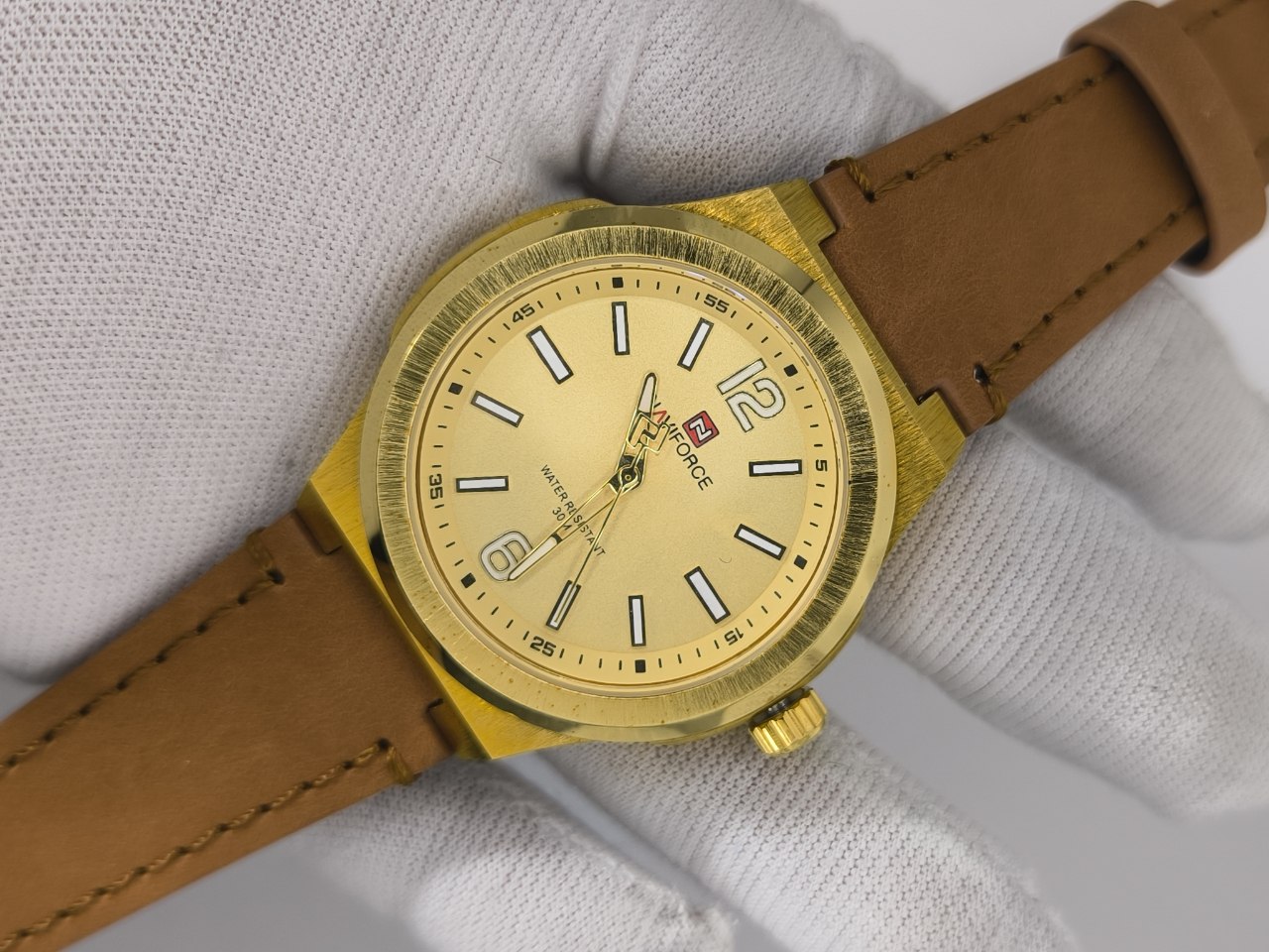 ساعت مچی عقربهای مردانه نیوی فورس NAVIFORCE مدل Nf9233 با بند چرمی دور دوخت و ضد تعریق انتخابی شیک و مقاوم برای استفاده روزمره است این مدل با موتور کوارتز دقیق تقویمدار و شیشه معدنی ضد آب بوده و رنگ ثابت آن در کنار قفل سگکی راحتی و دوام را تضمین میکند محصول ارجینال همراه با کارت گارانتی و جعبه از فروشگاه اینترنتی روبی مد عرضه میشود تا ترکیبی از کیفیت و استایل را در اختیار شما قرار دهد.