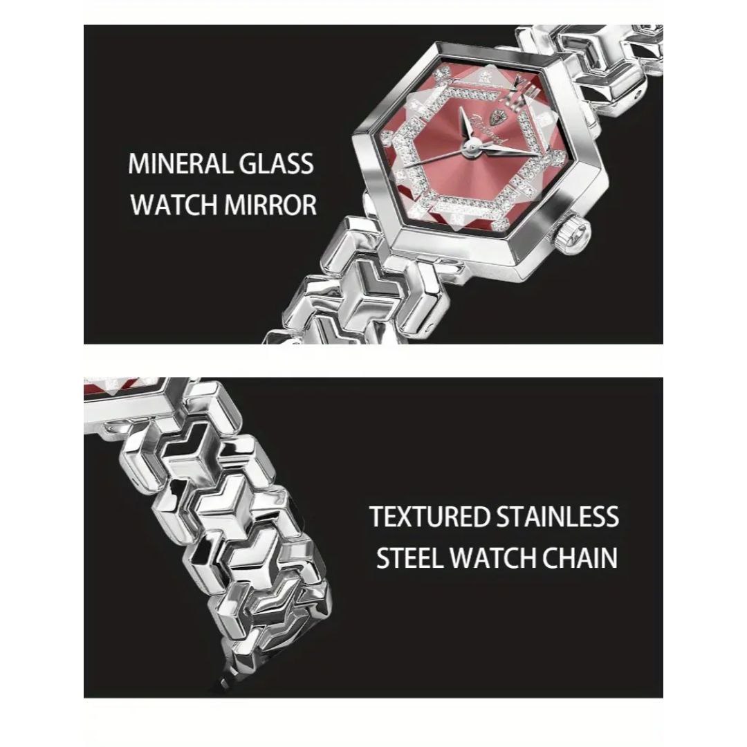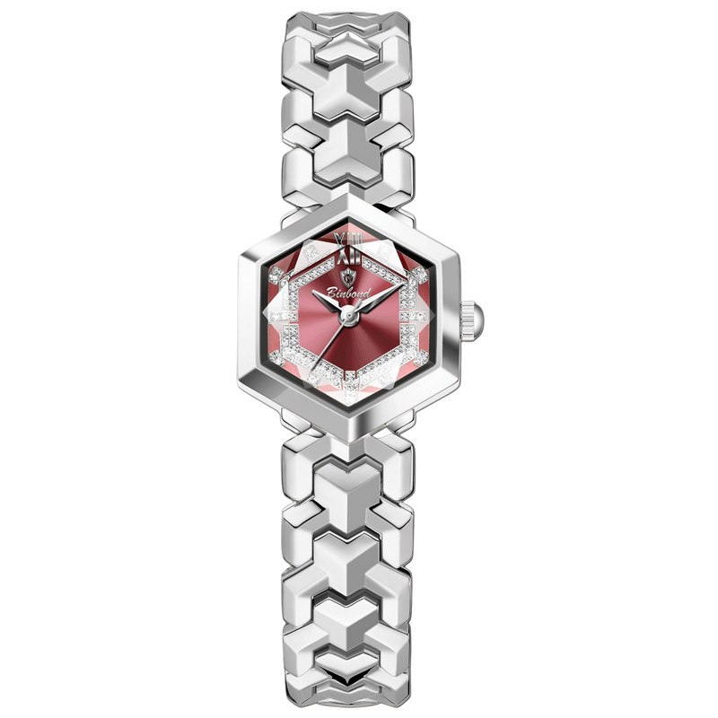 ساعت مچی زنانه بین باند مدل N113 یک انتخاب شیک و ظریف برای بانوانی‌ست که به زیبایی و کیفیت اهمیت می‌دهند این ساعت ارجینال با طراحی الماسی و صفحه نمایش آنالوگ عرضه می‌شود و دارای موتور کوارتز دقیق و مقاوم در برابر آب است بند آن از فولاد ضدزنگ ساخته شده با قفل دستبندی راحت و ایمن قطر صفحه ۲۳ میلی‌متر و ضخامت ۱۰ میلی‌متر است و شیشه معدنی الماس ضدخش جلوه‌ای خاص به آن بخشیده است این مدل از برند BIN BOND در فروشگاه اینترنتی روبی مد با ضمانت اصالت و کیفیت ارائه می‌شود و مناسب استفاده روزمره و مجالس رسمی است.