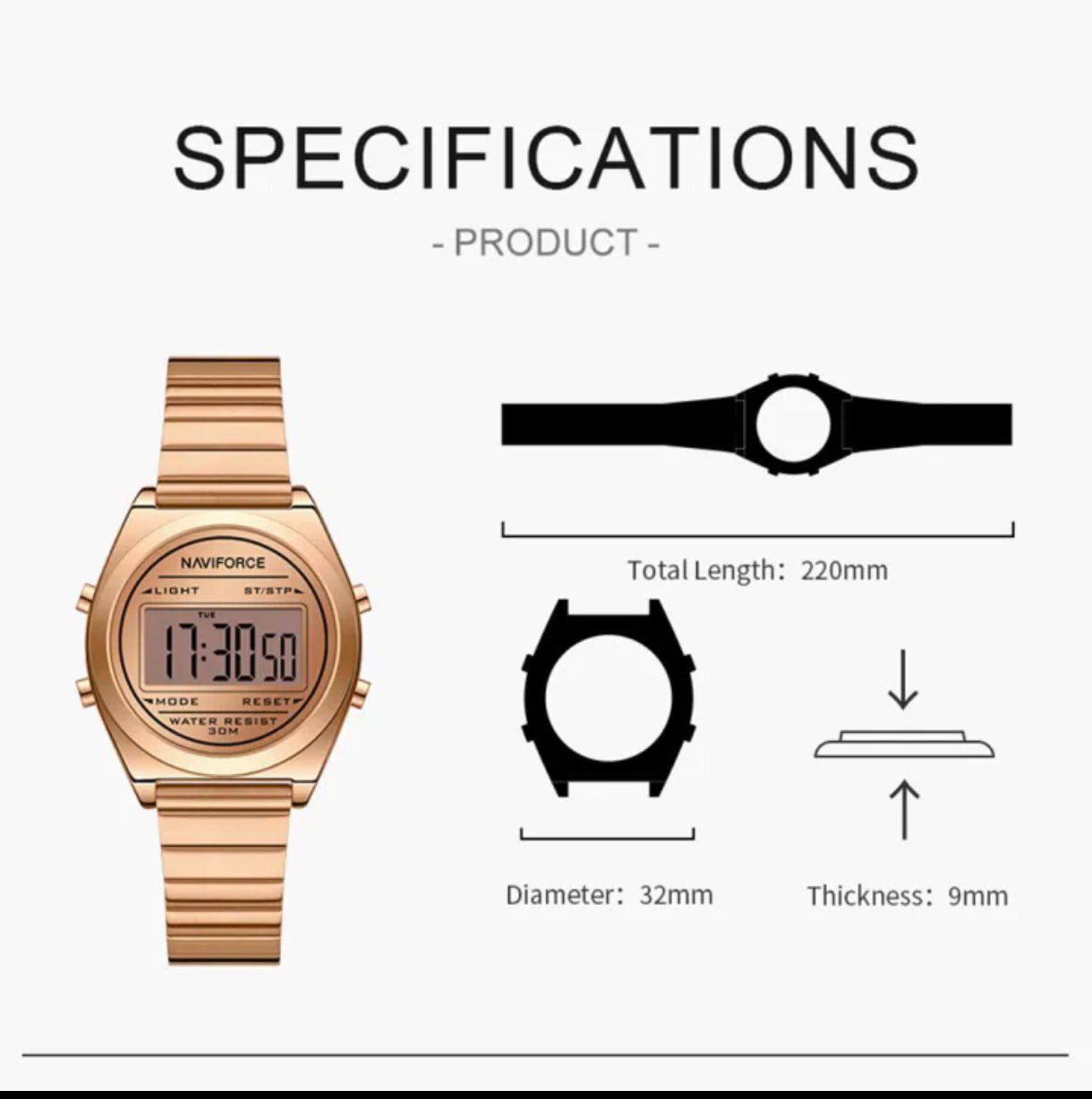 ساعت مچی زنانه دیجیتال نیوی فورس NAVIFORCE مدل Nf5066 بند کرکره ای