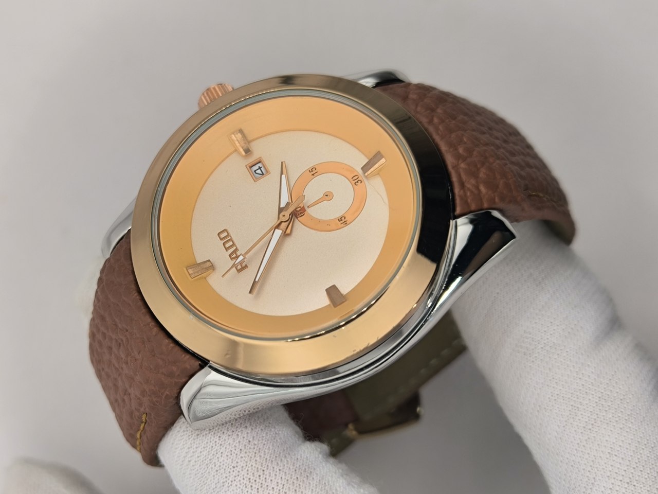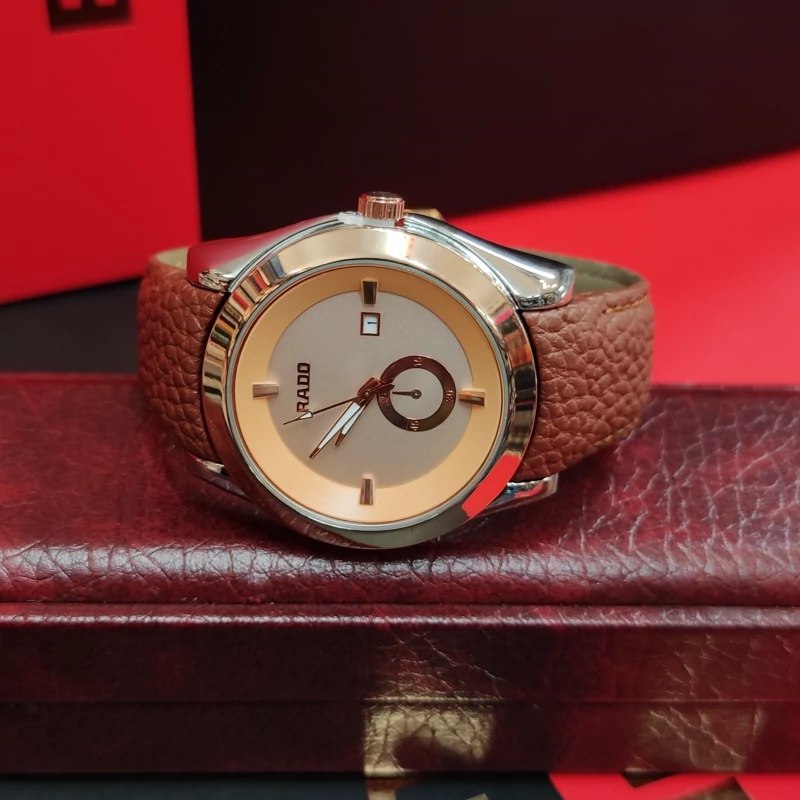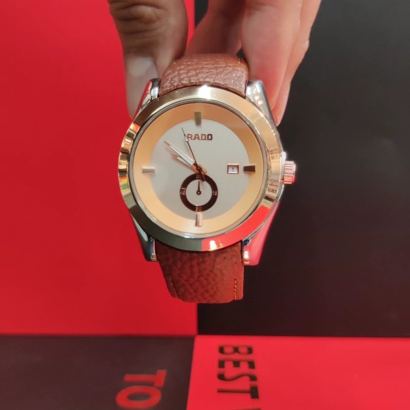 ساعت مچی مردانه RADO با بند چرمی دور دوخت و موتور ژاپن انتخابی شیک و بادوام برای آقایان خوشسلیقه است طراحی کلاسیک با قفل کمربندی و صفحه تقویمدار در کنار عقربههای شبنما استفاده از آن را در هر شرایطی آسان کرده این مدل ضد آب با بند چرم باکیفیت و ضمانت یک ساله از فروشگاه اینترنتی روبی مد قابل تهیه است و ترکیبی از زیبایی و عملکرد را در اختیار شما قرار میدهد.