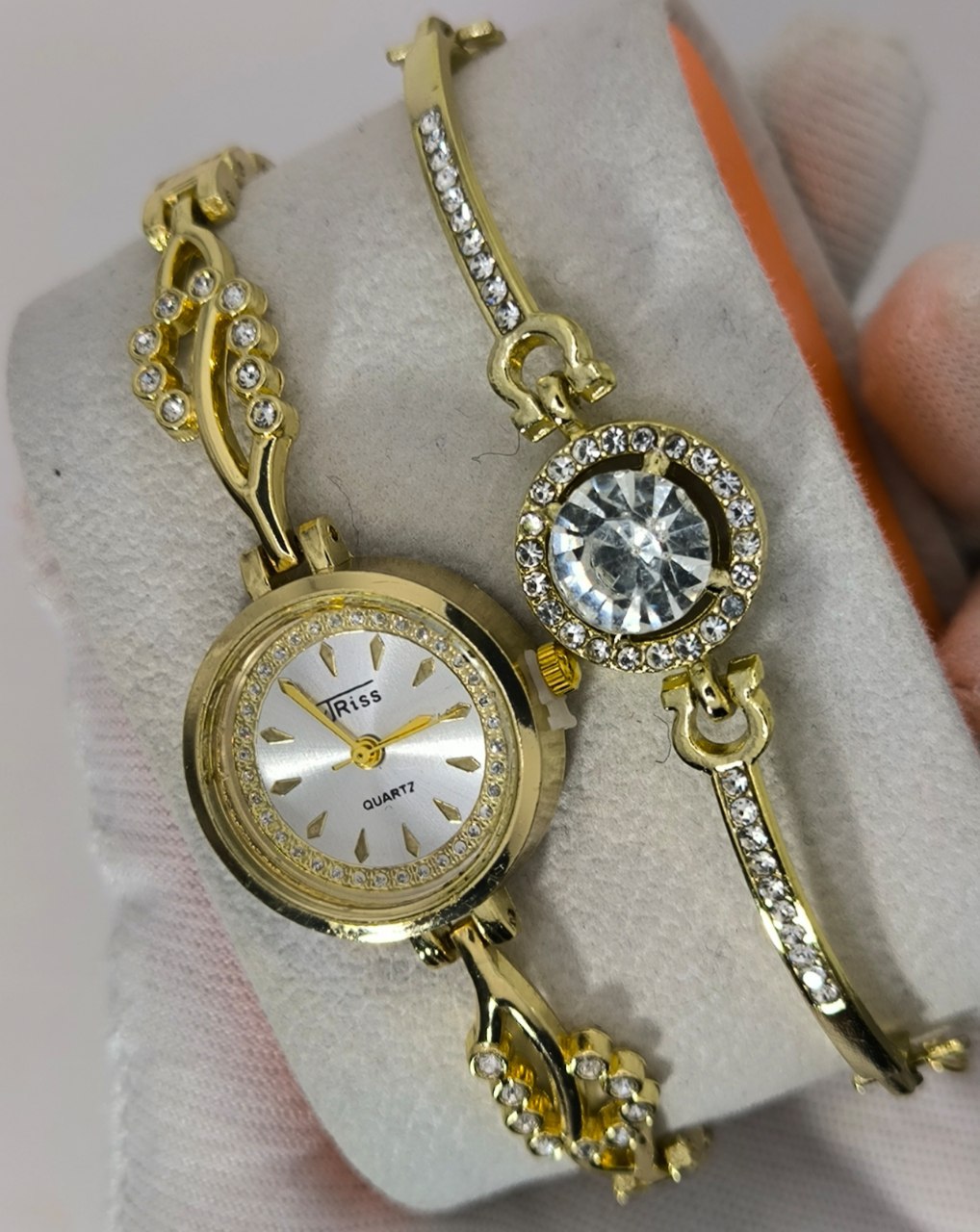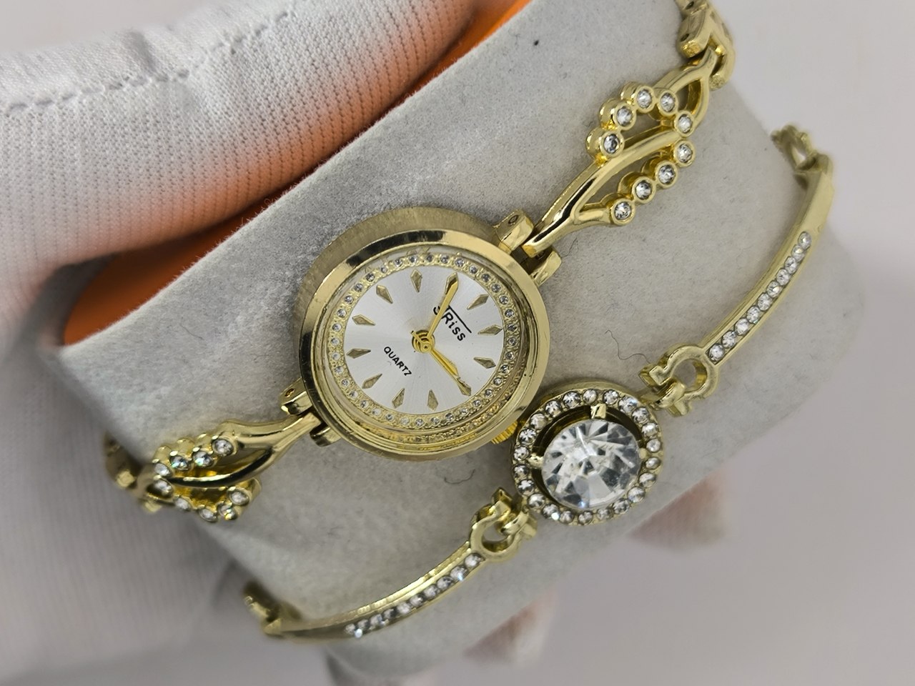 ست ساعت و دستبند دخترانه نگینی کوارتز برند جریس