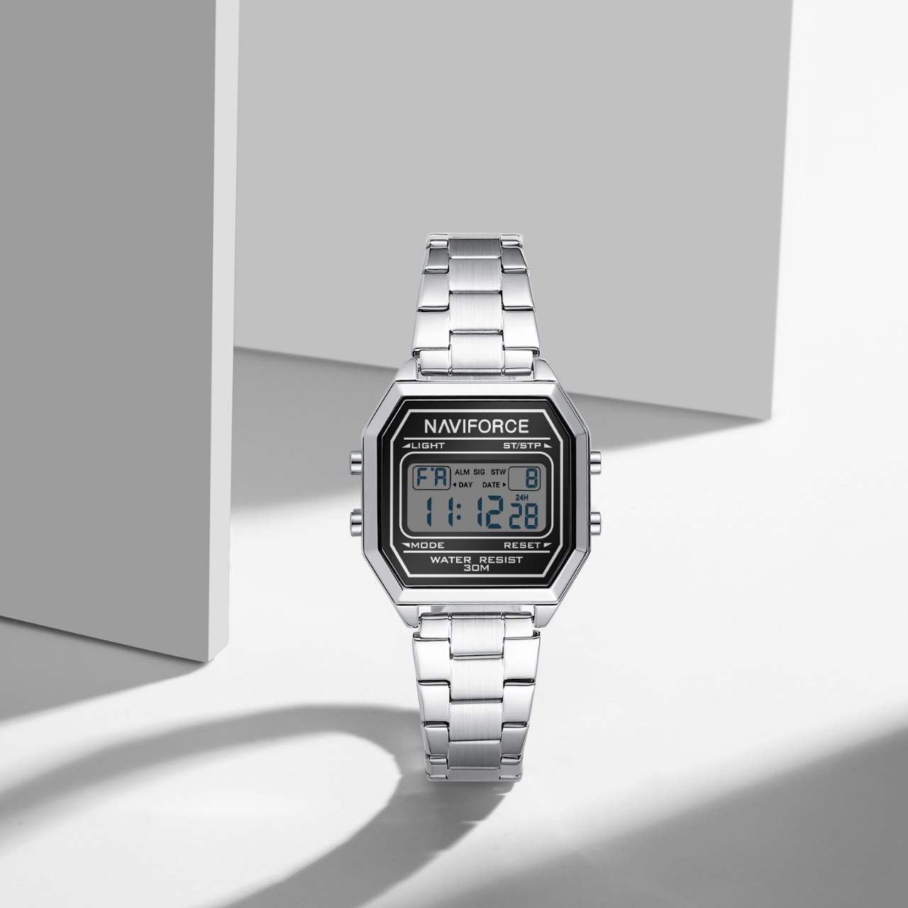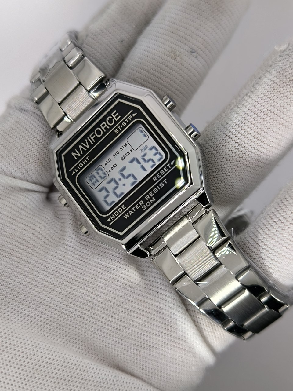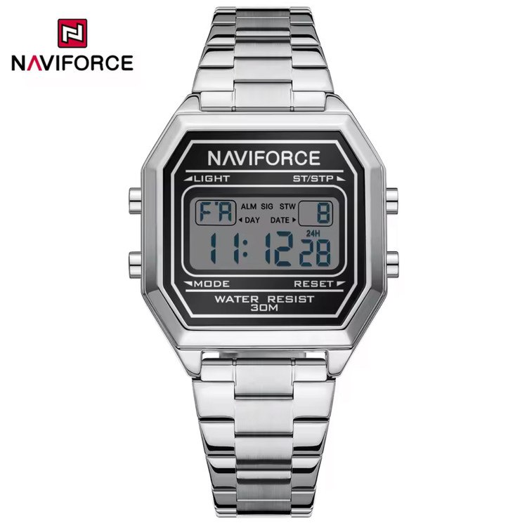 ساعت مچی مردانه دیجیتال نیوی فورس NAVIFORCE مدل Nf5063s با طراحی اسپرت و امکانات کامل مثل کرنومتر تایمر تقویم ثانیه شمار و صفحه چراغ دار انتخابی حرفهای برای استفاده روزمره و ورزشیه این مدل ارجینال با کارت گارانتی و جعبه عرضه میشه و دارای موتور کوارتز ژاپنی قاب استیل رنگ ثابت شیشه معدنی ضد خش و بند ضد حساسیت با قفل ضامن دار کلیپسیه همچنین ضد آب بودنش باعث شده در فروشگاه اینترنتی روبی مد یکی از گزینههای محبوب و پرفروش باشه.