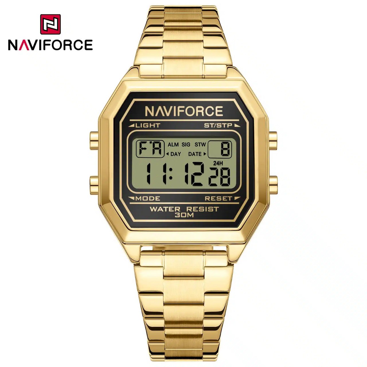 ساعت مچی مردانه دیجیتال نیوی فورس NAVIFORCE مدل Nf5063s طلایی استیل