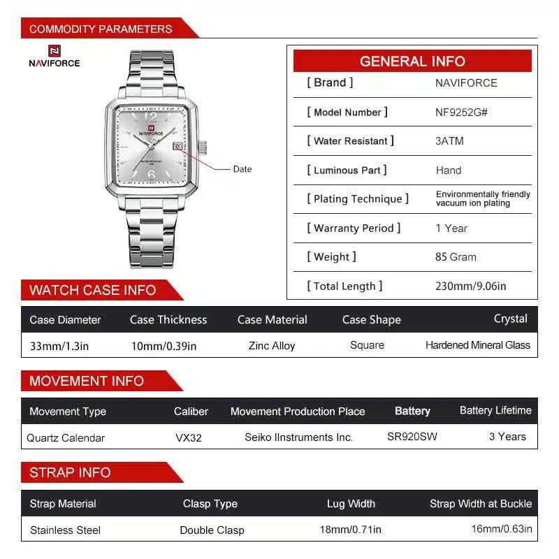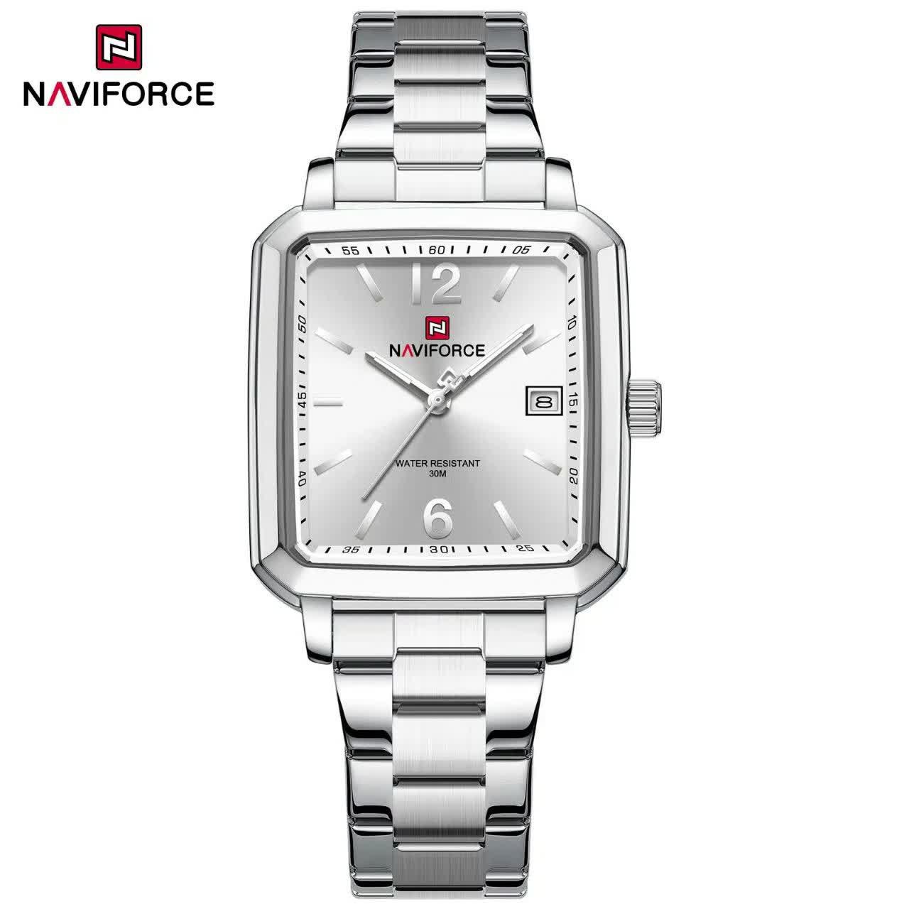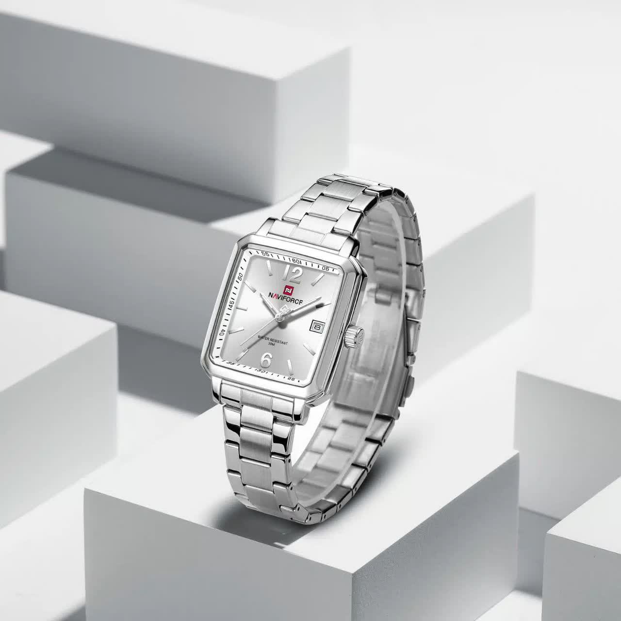 ساعت مچی عقربهای مردانه نیوی فورس NAVIFORCE مدل Nf8023 اورجینال با کارت گارانتی و جعبه عرضه میشود و انتخابی شیک و مطمئن برای آقایان خوشسلیقه است این ساعت با موتور ژاپنی دقیق قاب استیل مقاوم و بند استیل رنگ ثابت ضد حساسیت طراحی شده و دارای صفحه مستطیل خاص با قابلیت شبنما و تقویم روزانه است شیشه معدنی ضد خش دوام بالایی ایجاد کرده و قفل کلیپسی ضامندار امنیت و راحتی بیشتری فراهم میکند قابلیت ضد آب بودن این مدل را به گزینهای مناسب برای استفاده روزمره و رسمی تبدیل کرده است این محصول از طریق فروشگاه اینترنتی روبی مد ارائه میشود.
