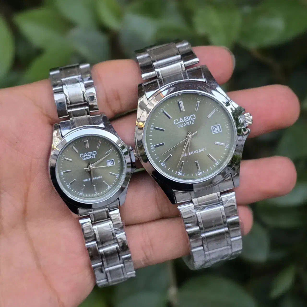 ست ساعت مچی زنانه و مردانه کاسیو CASIO صفحه سبز زیتونی