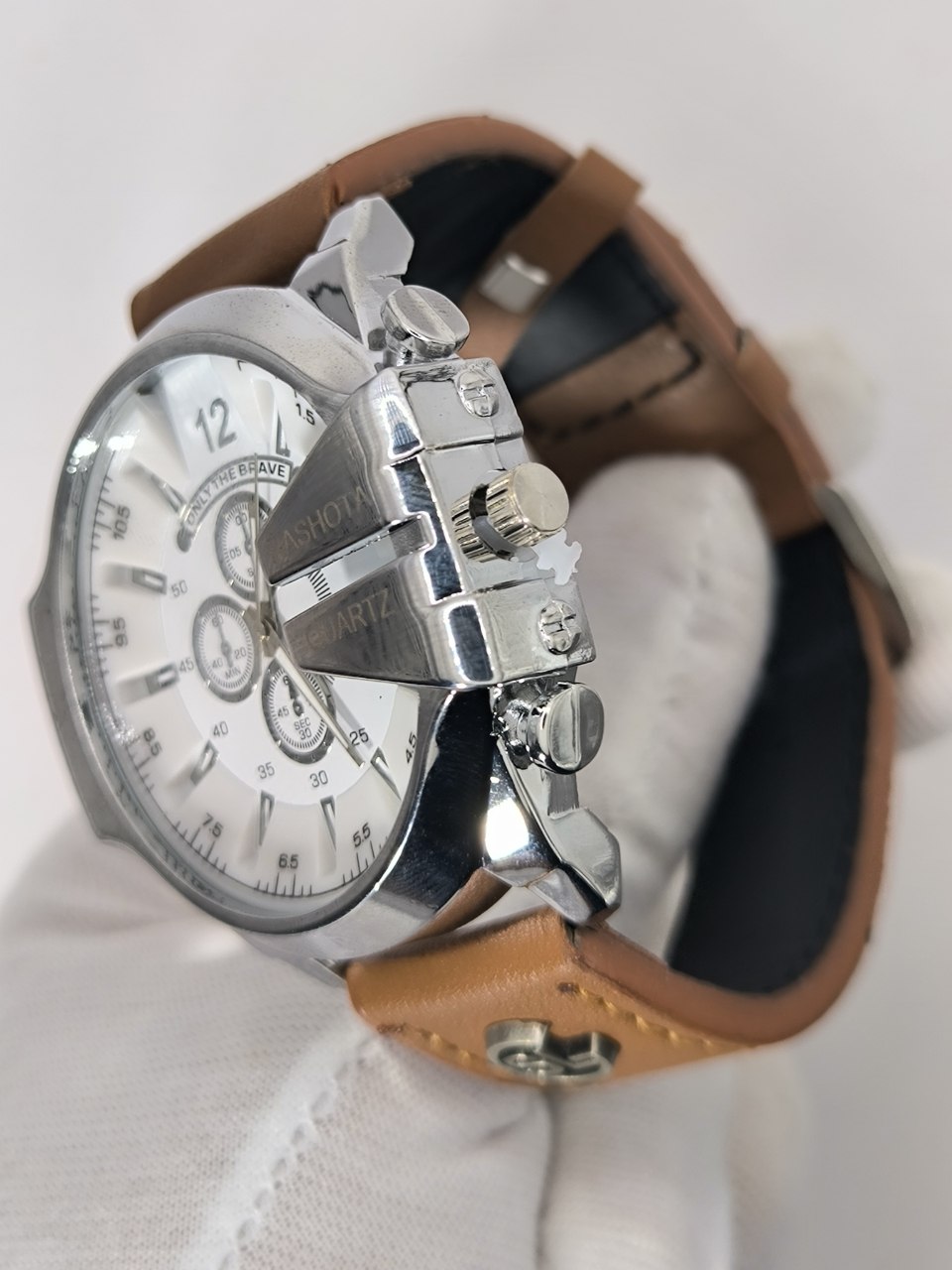 ساعت مچی مردانه دیزل DIESEL شاخدار بند چرمی موتور کوارتز