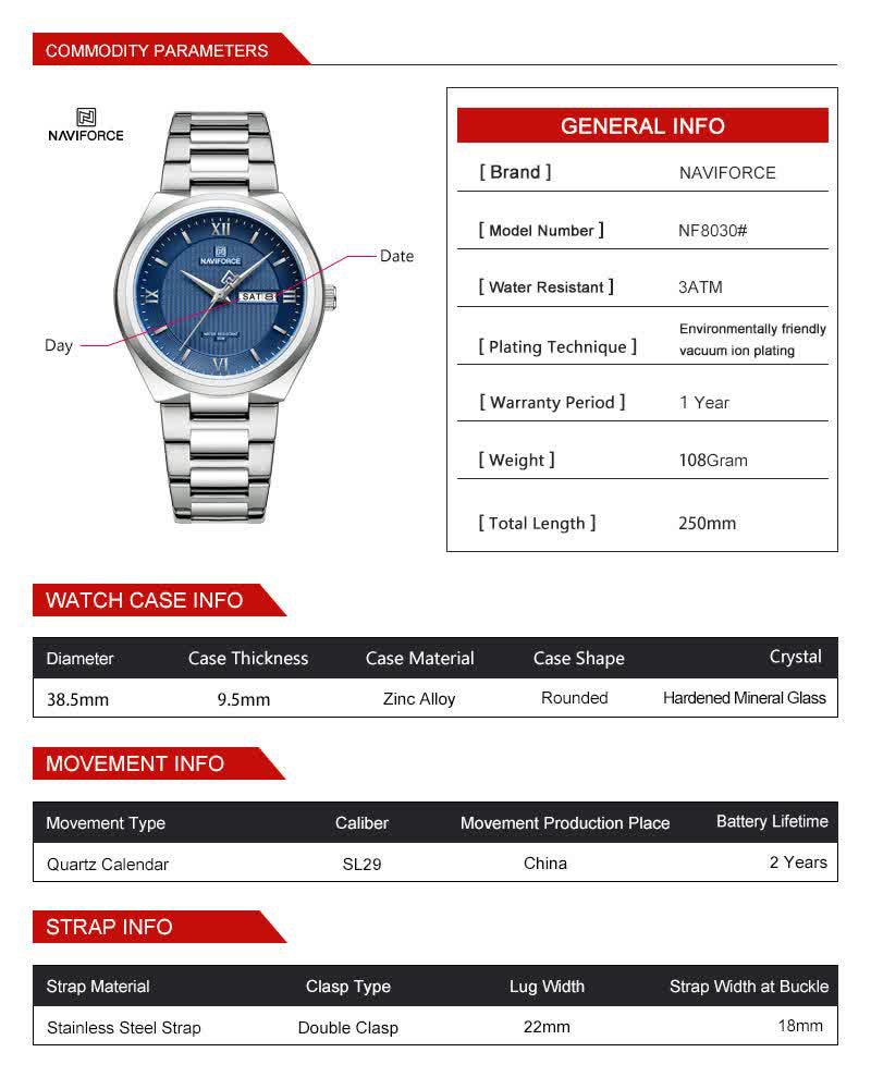 ساعت مچی عقربه ای مردانه نیوی فورس NAVIFORCE مدل Nf8030 اورجینال