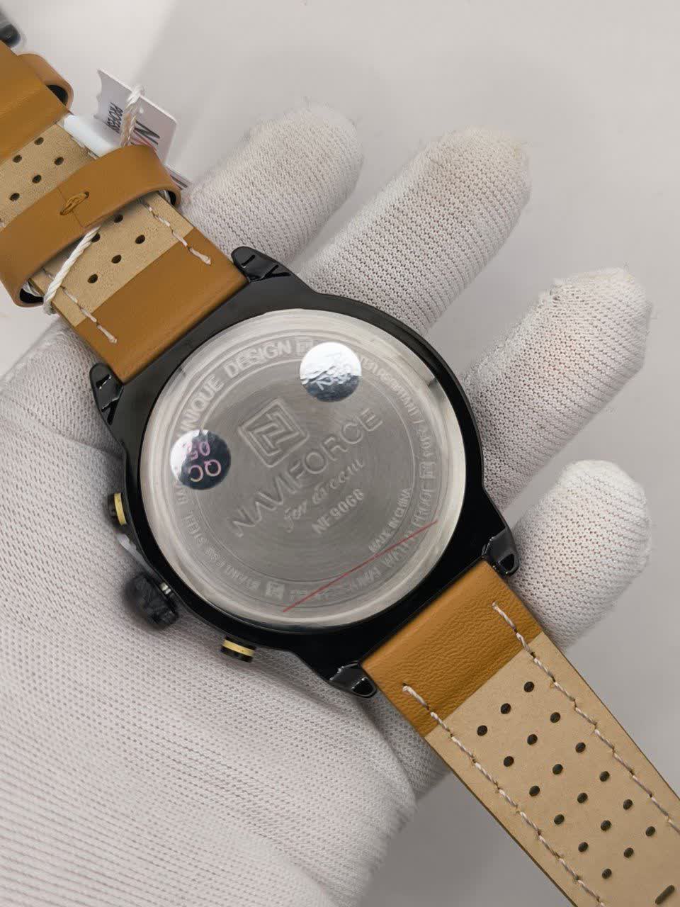 ساعت مچی مردانه نیوی فورس سه زمانه NAVIFORCE مدل Nf9068l بند چرمی یک انتخاب اورجینال با کارت گارانتی و جعبه است که با موتور ژاپنی دقیق و سه موتور فعال عملکردی حرفهای ارائه میدهد این ساعت مجهز به تقویم روزانه و عقربه شب نما بوده و قاب استیل مقاوم همراه با شیشه معدنی ضد خش دوام بالایی دارد بند چرم دور دوخت ضد حساسیت پوستی با قفل کمربندی راحتی و امنیت استفاده را تضمین میکند طراحی صفحه گرد کلاسیک و خاص در کنار قابلیت ضد آب این محصول را به گزینهای کامل برای استفاده روزمره و رسمی تبدیل کرده است این ساعت ویژه را میتوانید از فروشگاه اینترنتی روبی مد تهیه کنید.