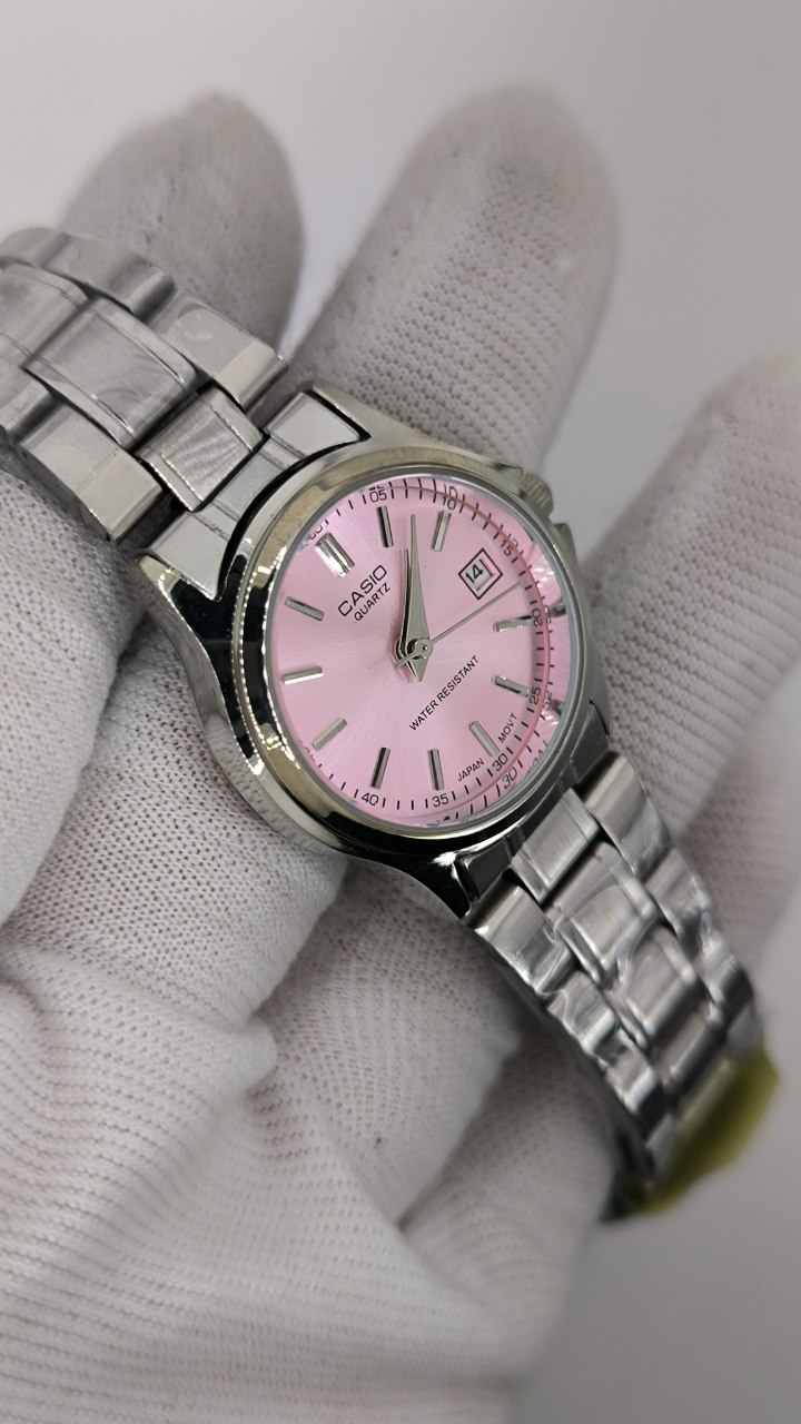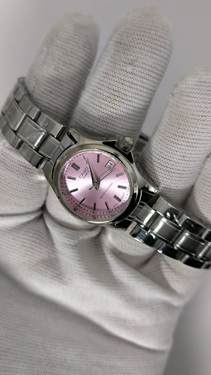ساعت مچی عقربه ای زنانه کاسیو CASIO صفحه صورتی موتور ژاپن