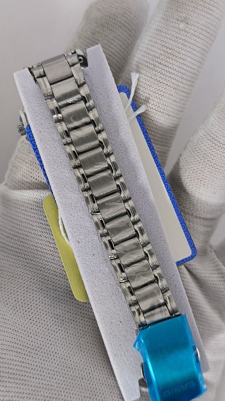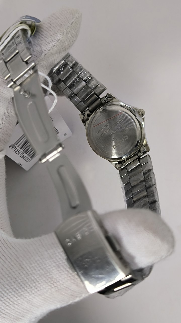 ساعت مچی عقربه ای زنانه کاسیو CASIO با طراحی خاص کلاسیک و رنگ سیلور انتخابی شیک و ماندگار است این مدل با بند استیل مقاوم و قفل کلیپسی راحتی و دوام را تضمین میکند موتور کوارتز دقیق همراه با کیفیت سفارشی و قابلیت روز شمار عملکردی کاربردی و مطمئن ارائه میدهد مقاوم در برابر آب بوده و برای استفاده روزمره و رسمی مناسب است فروشگاه اینترنتی روبی مد این محصول را برای بانوانی که به زیبایی و اصالت اهمیت میدهند عرضه میکند.