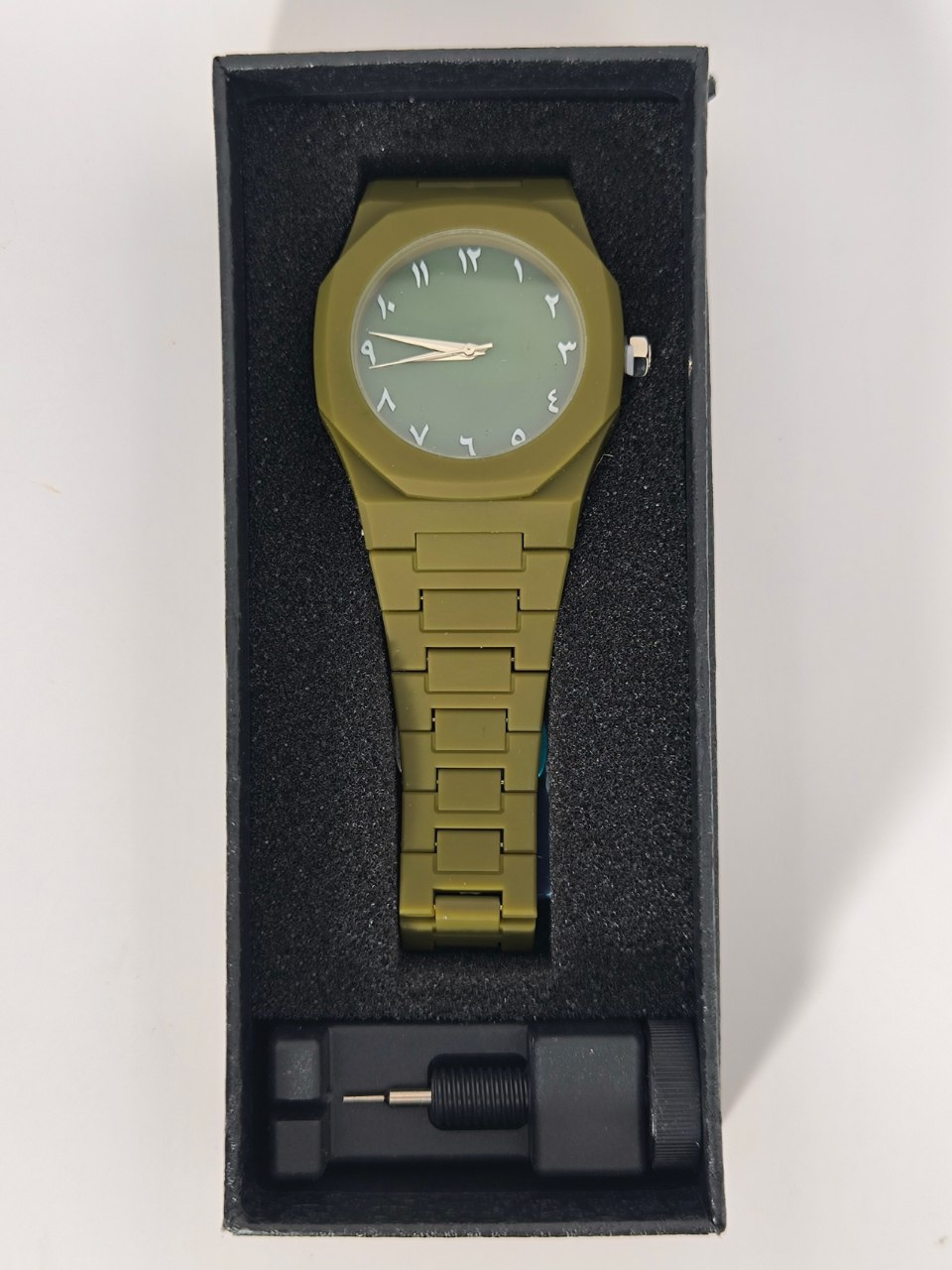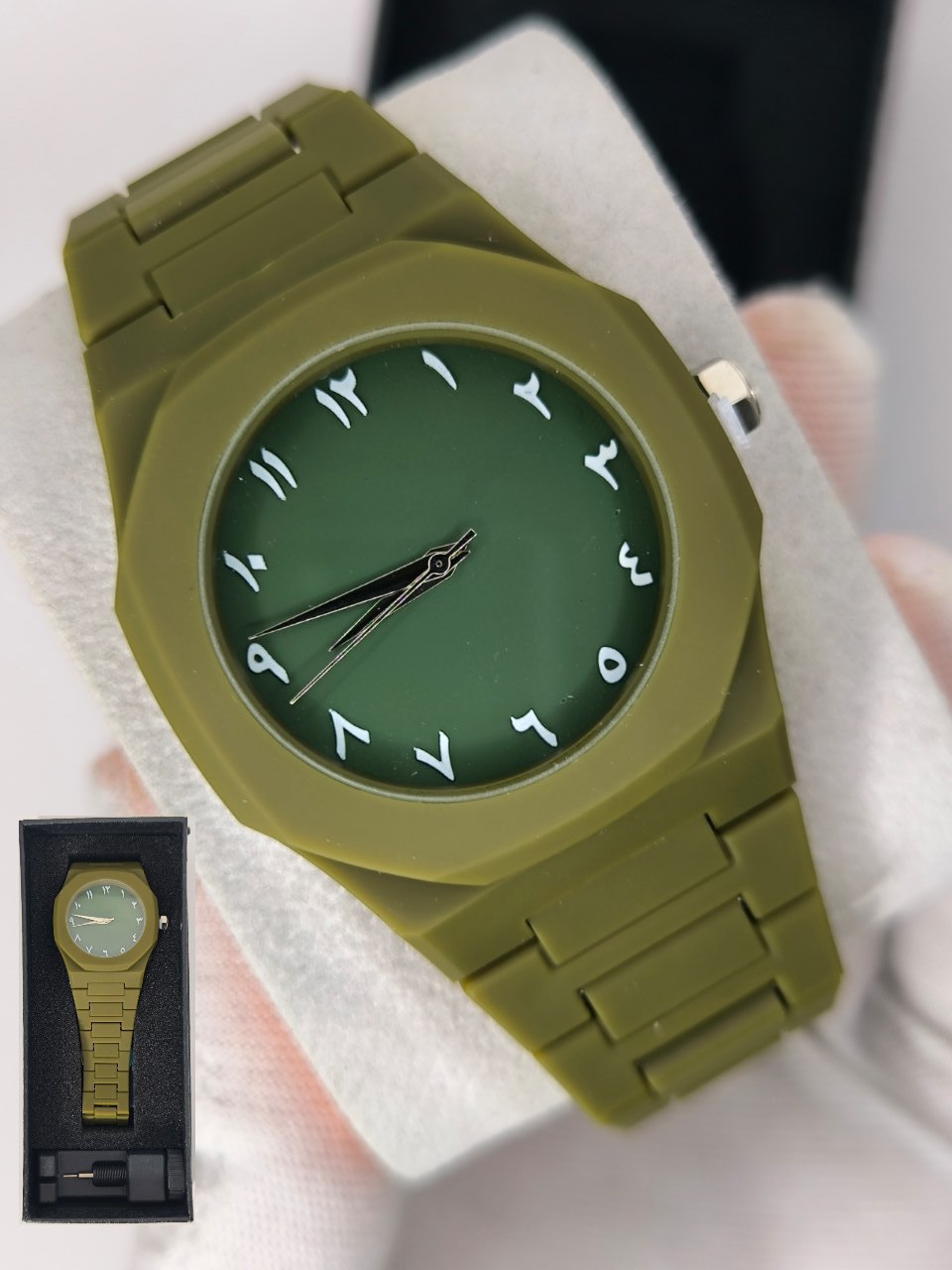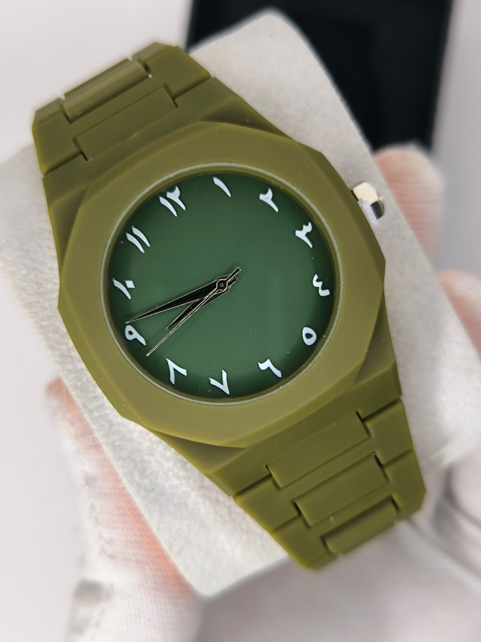 ساعت مچی مدل دارک واچ اعداد فارسی بند کربنی رنگ سبز +رنگبندی
