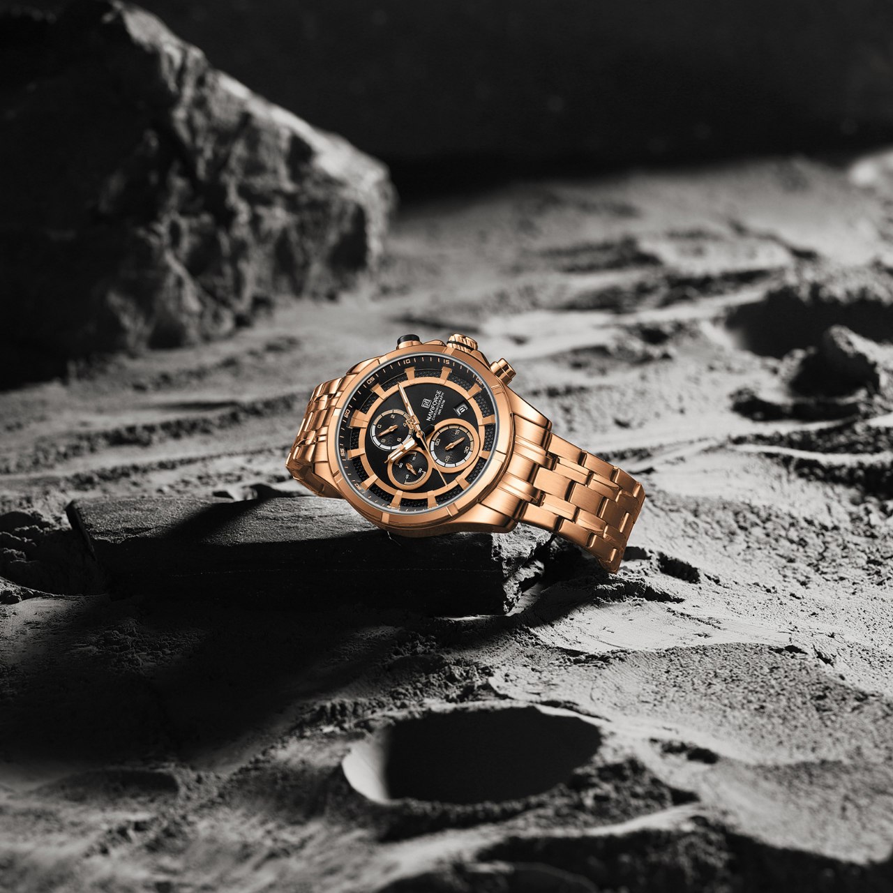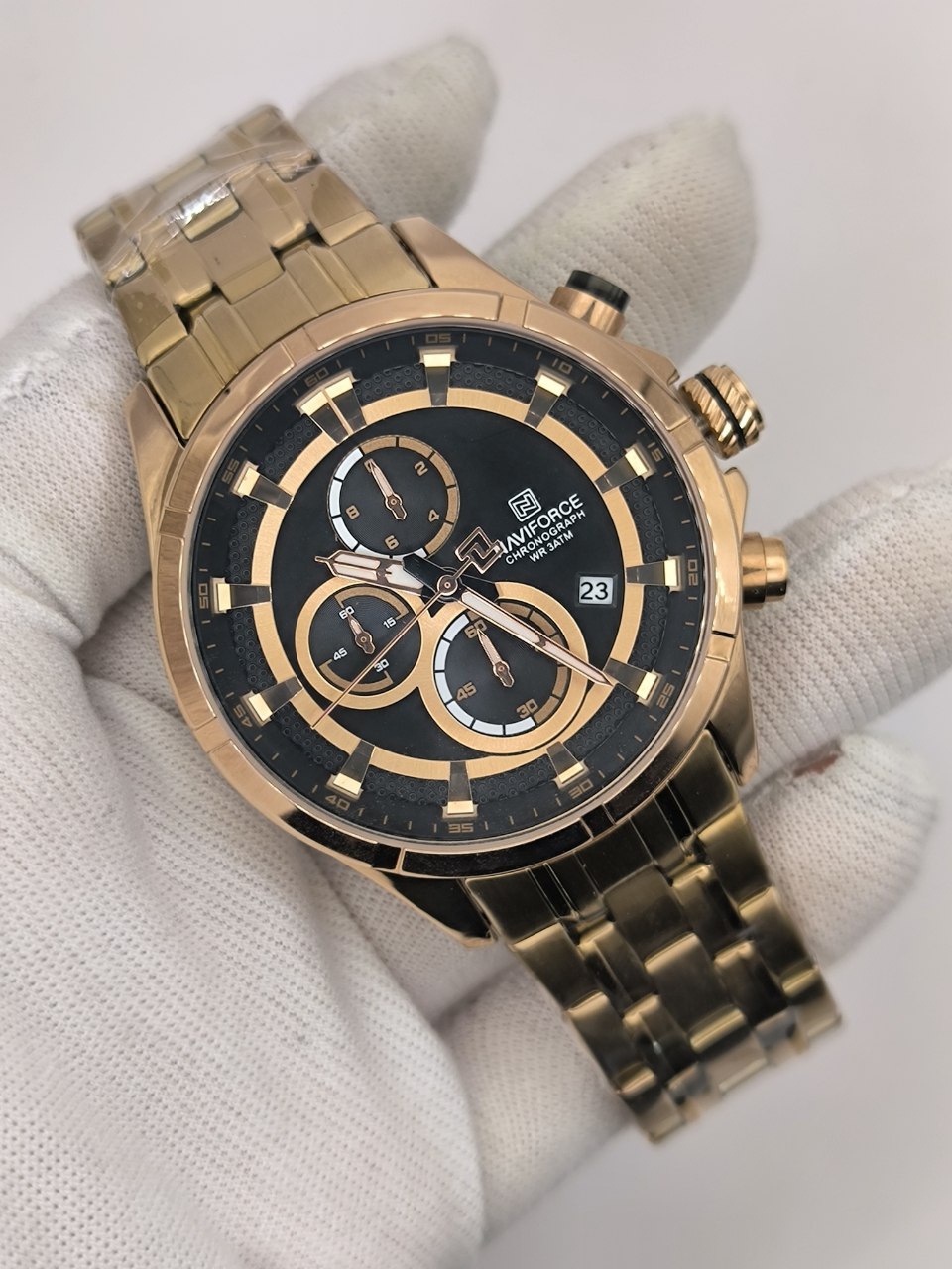 ساعت مچی کرنوگراف مردانه نیوی فورس NAVIFORCE مدل Nf8046 اورجینال رزگُلد