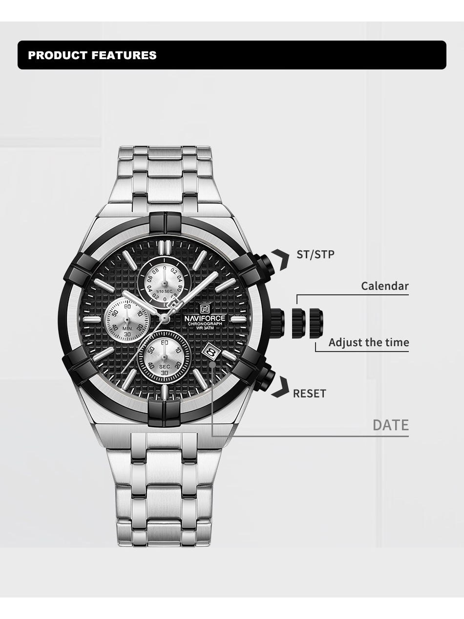 ساعت مچی کرنوگراف مردانه نیوی فورس NAVIFORCE مدل Nf8042 اورجینال استیل