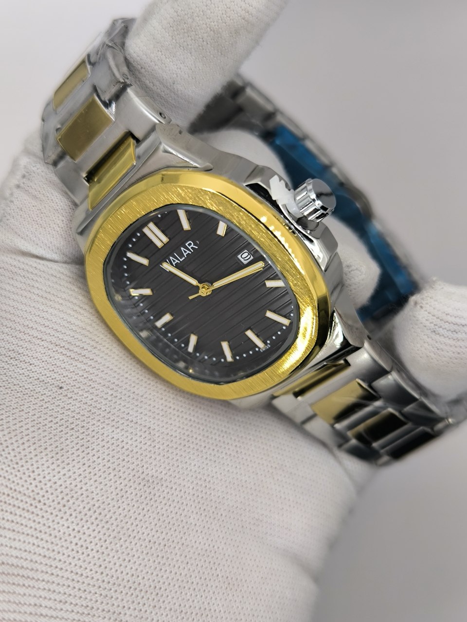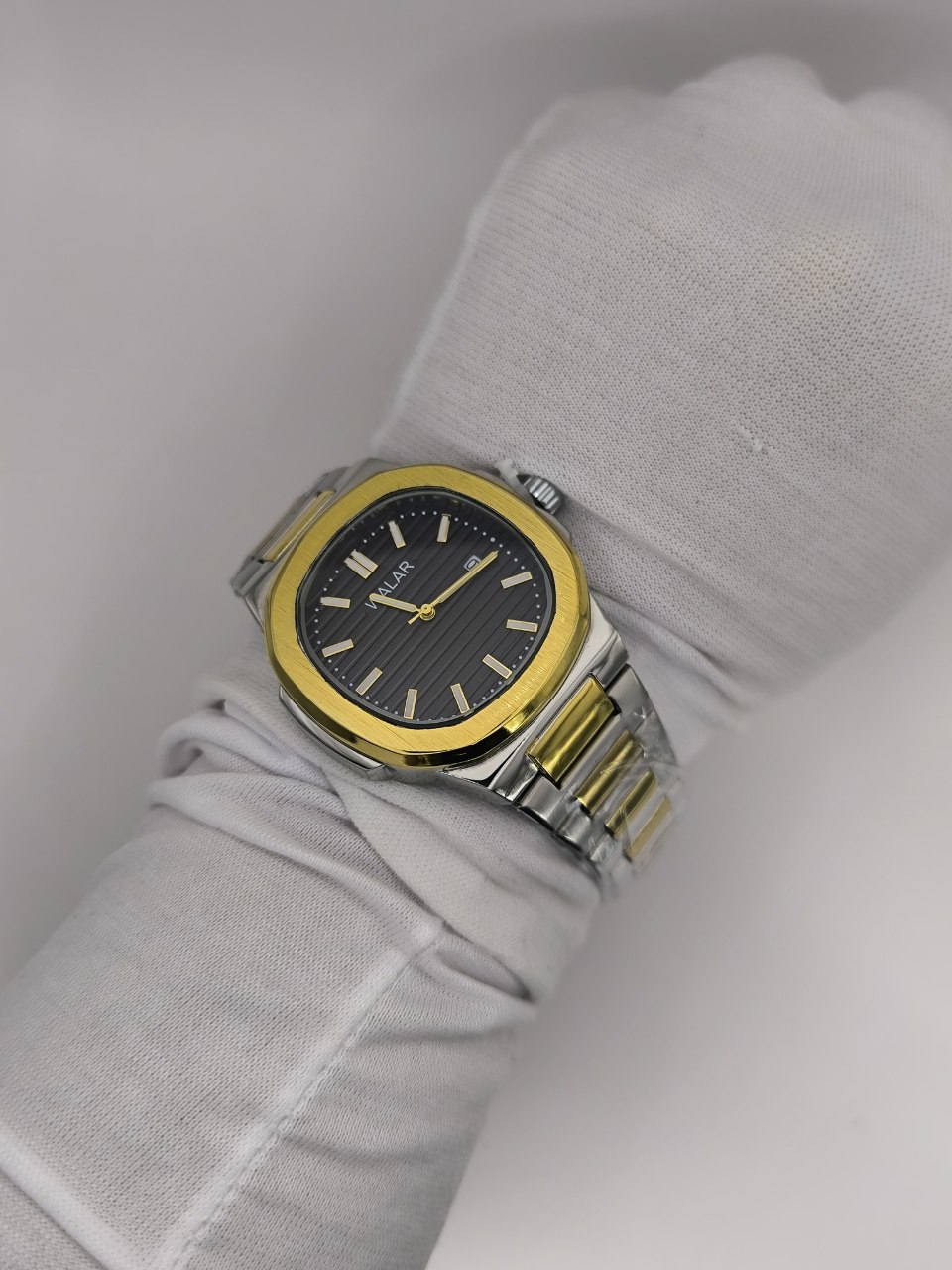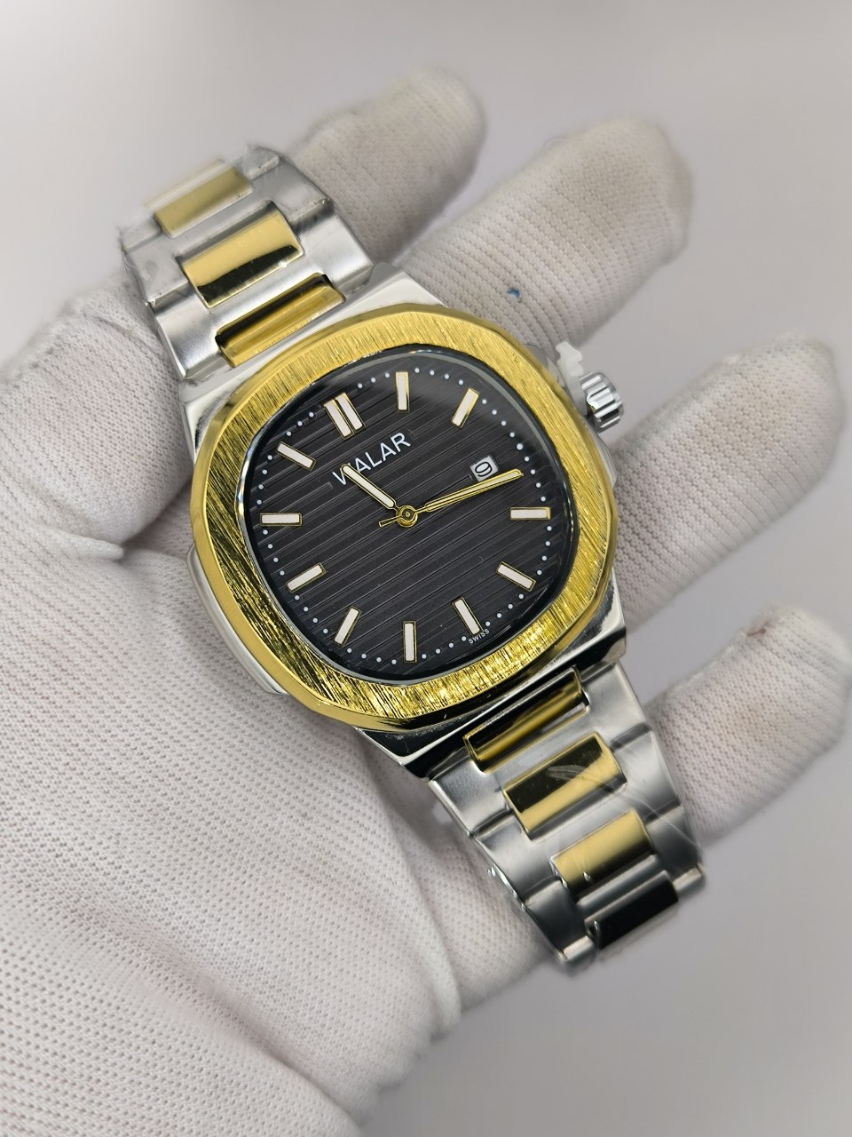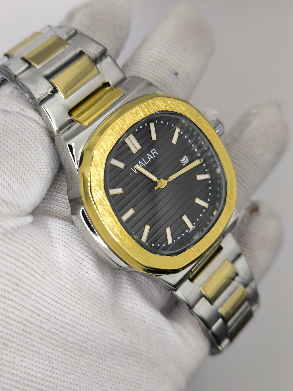ساعت مچی مردانه پتک فیلیپ از برند والار WALAR با طراحی برند شرکتی ارجینال و فرم صفحه چند ضلعی انتخابی لوکس و خاص برای آقایان است این ساعت با بند استیل رنگ ثابت و بند توپور سنگین بینظیر جلوهای شیک و ماندگار دارد قفل پروانه ای مخفی استفاده را راحت و ایمن میکند و قابلیت ضد آب به همراه تقویم روزانه آن را کاربردیتر ساخته است ساعت مردانه والار پتک فیلیپ را همین حالا از فروشگاه اینترنتی روبی مد تهیه کنید.
