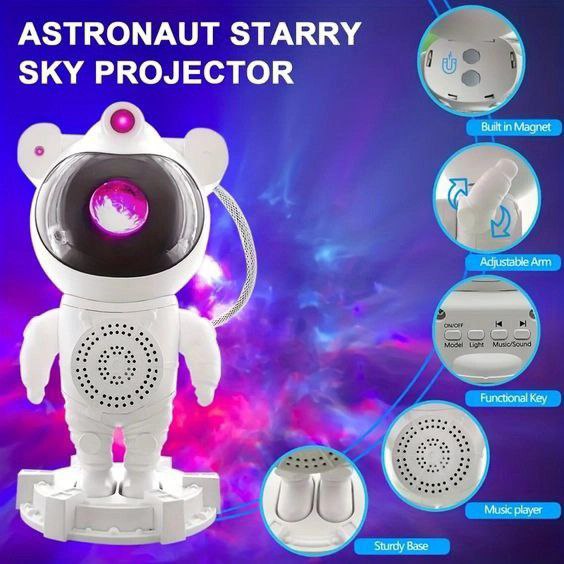 چراغ کهکشانی آسمان مجازی سایز بزرگ آدم فضایی با اسپیکر بلوتوثی یک انتخاب جذاب برای ایجاد فضایی متفاوت در خانه است این محصول دارای ریموت کنترل بوده و قابلیت پخش آهنگ را در اختیار شما قرار میدهد پروژکتور چرخشی 360 درجه آن الگوهای متنوع کهکشانی را نمایش میدهد و با پشتیبانی از 8 تا 12 حالت نوری میتوانید نورپردازی دلخواه خود را تنظیم کنید وجود دو منبع نور ستارهای و نور سحابی همراه با قابلیت تنظیم زاویه نور از طریق سر فضانورد تجربهای سهبعدی و متحرک از رنگهای متنوع ایجاد میکند اسپیکر داخلی بلوتوثی نیز امکان پخش موسیقی یا صداهای آرامبخش را فراهم میسازد فروشگاه اینترنتی روبی مد این چراغ فانتزی و کاربردی را برای شما آماده کرده تا فضایی رویایی و خاص داشته باشید.