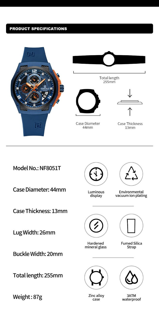 ساعت مچی کرنوگراف مردانه نیوی فورس NAVIFORCE مدل Nf8051t اورجینال