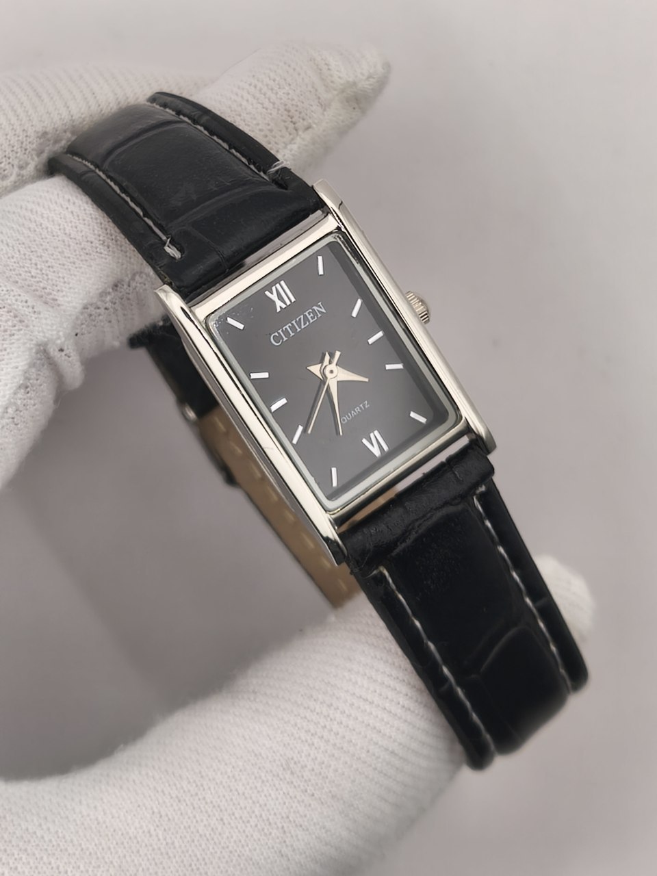 ساعت مچی زنانه صفحه مستطیل سیتیزن CITIZEN بند چرمی صفحه مشکی