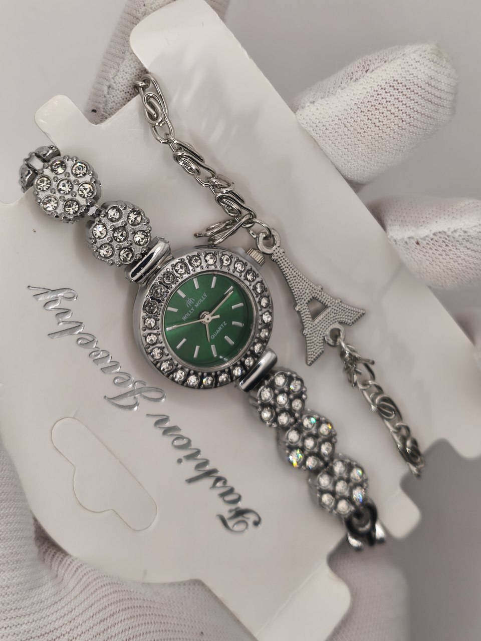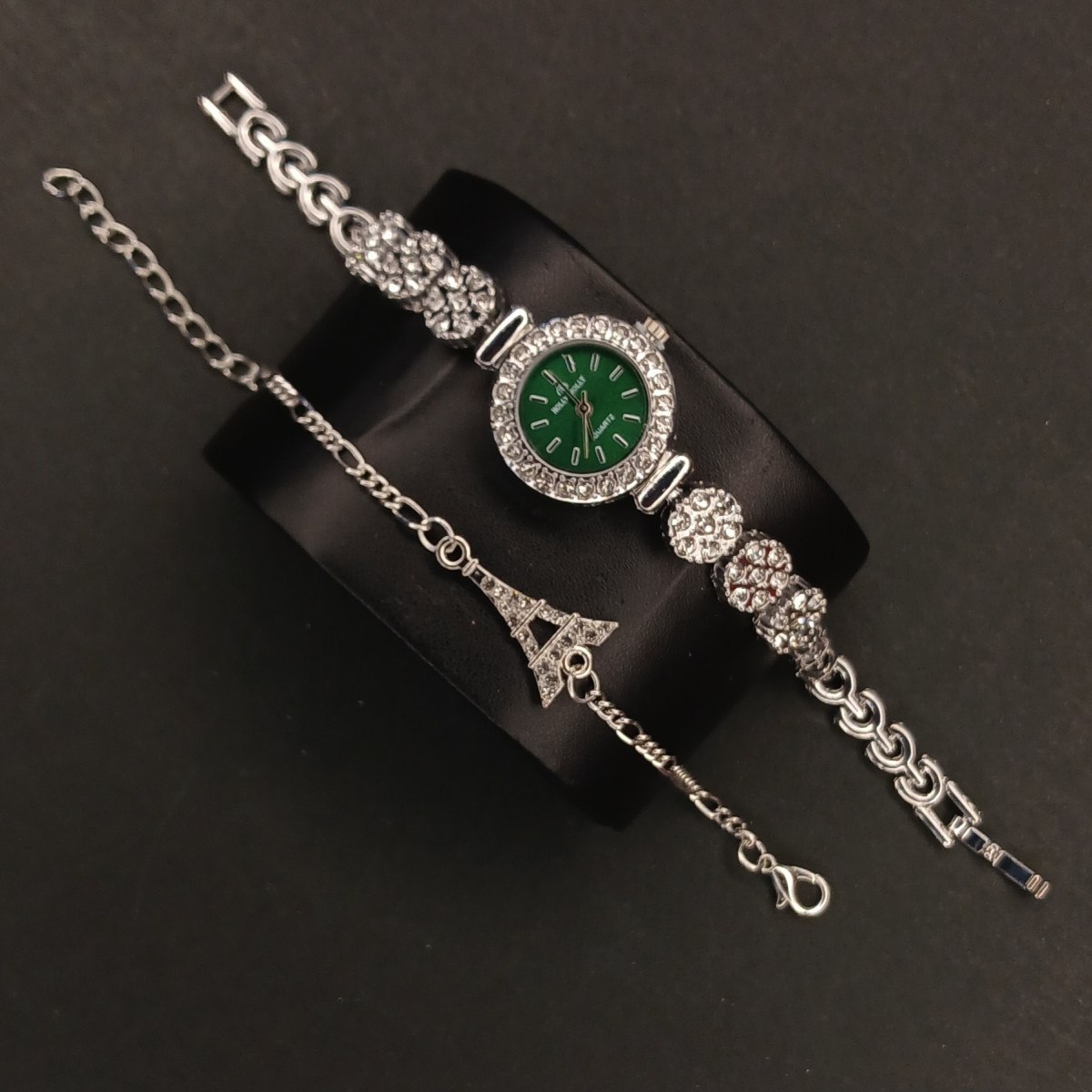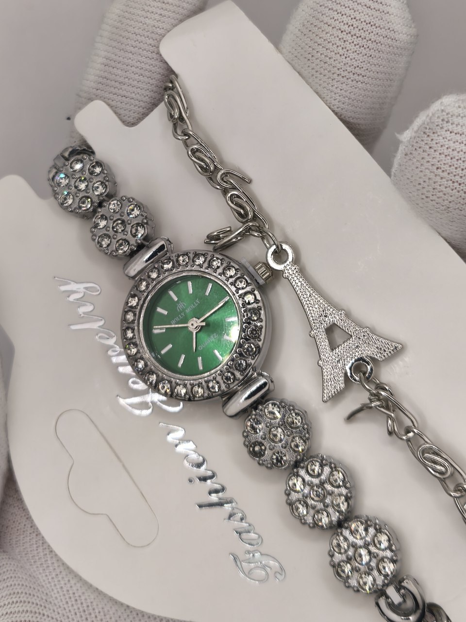ست ساعت و دستبند دخترانه نگینی برند هولی مولی طرح ایفل