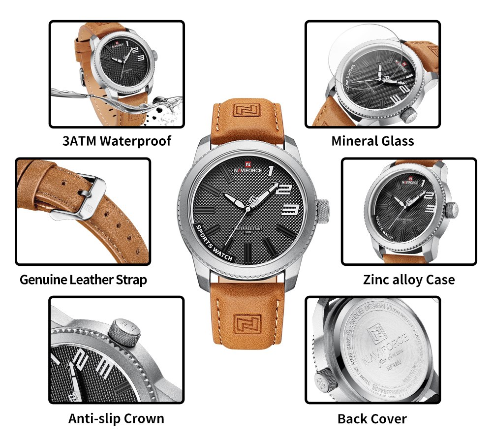 ساعت مچی مردانه نیوی فورس NAVIFORCE مدل Nf9202l بند چرمی