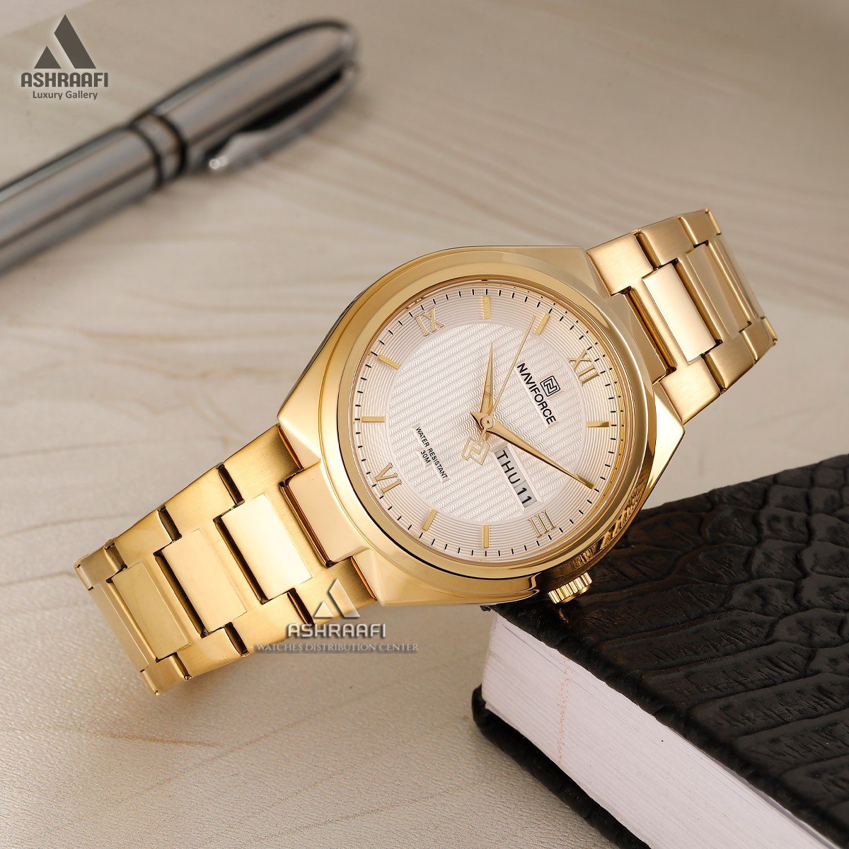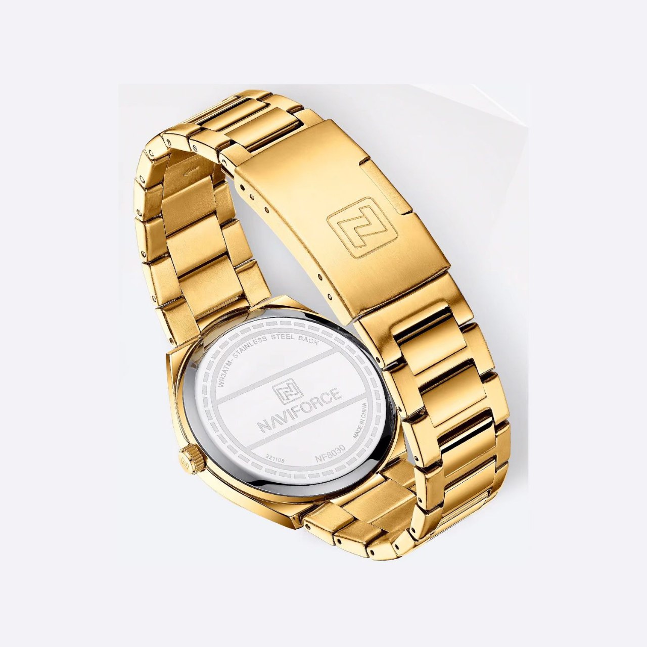 ساعت مچی عقربه ای مردانه نیوی فورس NAVIFORCE مدل Nf8030 بند طلایی