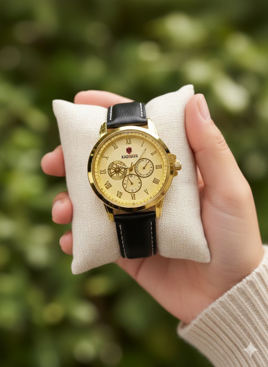 ساعت مچی سه موتوره مردانه کیدمن KADEMAN 2025 با بند چرمی اصل و طراحی شیک مجهز به سه موتور فول تایم نشانگر 24 ساعته شمارش معکوس روزشمار و موتور کوارتز دقیق است صفحه شب نما ضد آب رنگ ثابت و قفل کمربندی فولادی دوام و کارایی بالایی را تضمین میکند فروشگاه اینترنتی روبی مد این مدل را به عنوان انتخابی خاص برای استایل روزانه و رسمی عرضه میکند.