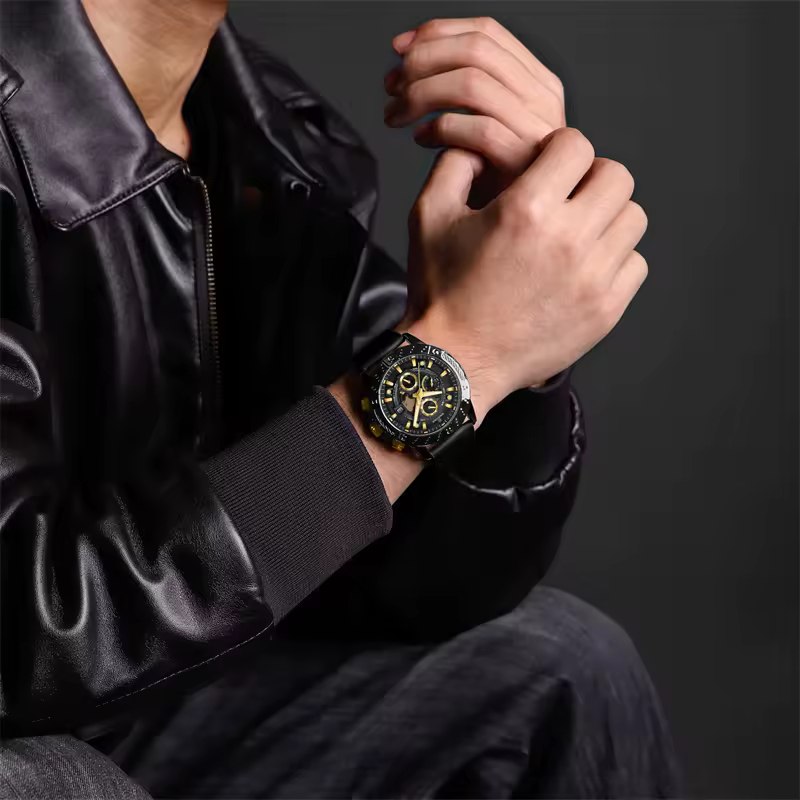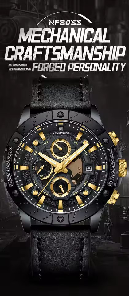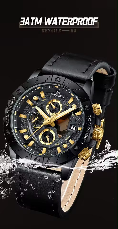 ساعت مچی کرنوگراف مردانه نیوی فورس NAVIFORCE مدل Nf8055 بند چرمی با طراحی اسپرت و کلاسیک انتخابی مناسب برای استایل روزمره و رسمی است این ساعت سه موتوره کرنوگراف ارجینال همراه با کارت گارانتی و جعبه عرضه میشود و مجهز به موتور ژاپن دقیق و قاب استیل مقاوم است شیشه معدنی ضد خش و عقربه شب تاب دوام و کارایی بالایی را تضمین میکند بند چرم دور دوخت ضد حساسیت پوستی با قفل کمربندی سوزنی راحتی و امنیت بیشتری فراهم میآورد فرم صفحه دایرهای ساده و جذاب جلوهای خاص به این مدل میدهد و قابلیت ضد آب آن استفاده روزانه را مطمئن میسازد این محصول را میتوانید از فروشگاه اینترنتی روبی مد تهیه کنید.