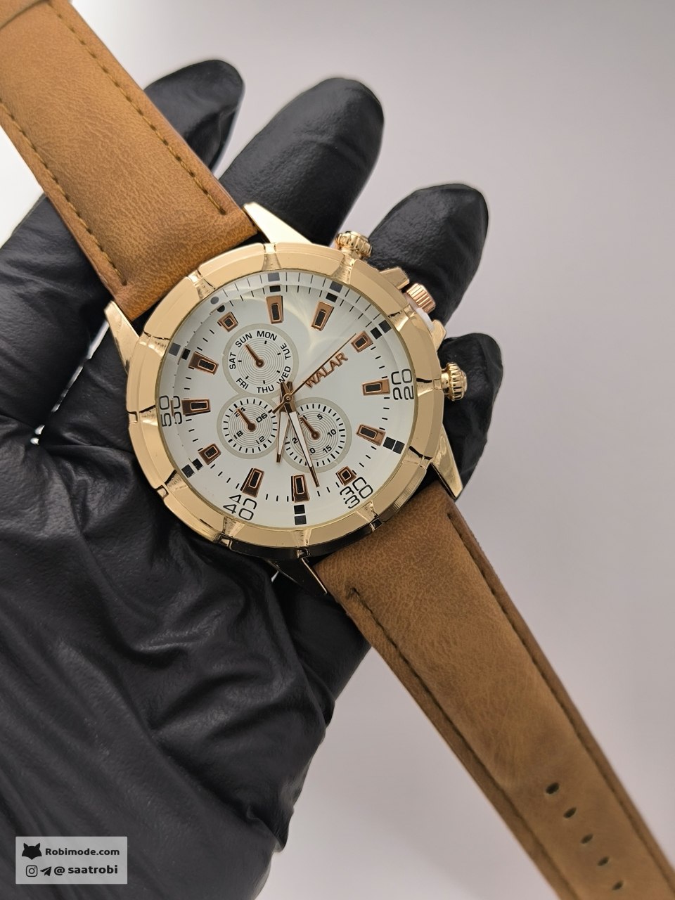 ساعت مچی مردانه والار با بند چرمی دور دوخت، قاب طلایی و صفحه نمایان، ترکیبی از طراحی کلاسیک و جذابیت روزمره را به همراه دارد. طرح سه موتوره آن جلوهای اسپرت و رسمی را همزمان ارائه میدهد. این مدل خوش قیمت و با کیفیت از برند شرکتی، انتخابی عالی برای کسانیست که بهدنبال ساعت بند چرمی شیک هستند. با خرید ساعت مچی مردانه والار از فروشگاه اینترنتی روبی مد، استایل خود را کامل کنید.