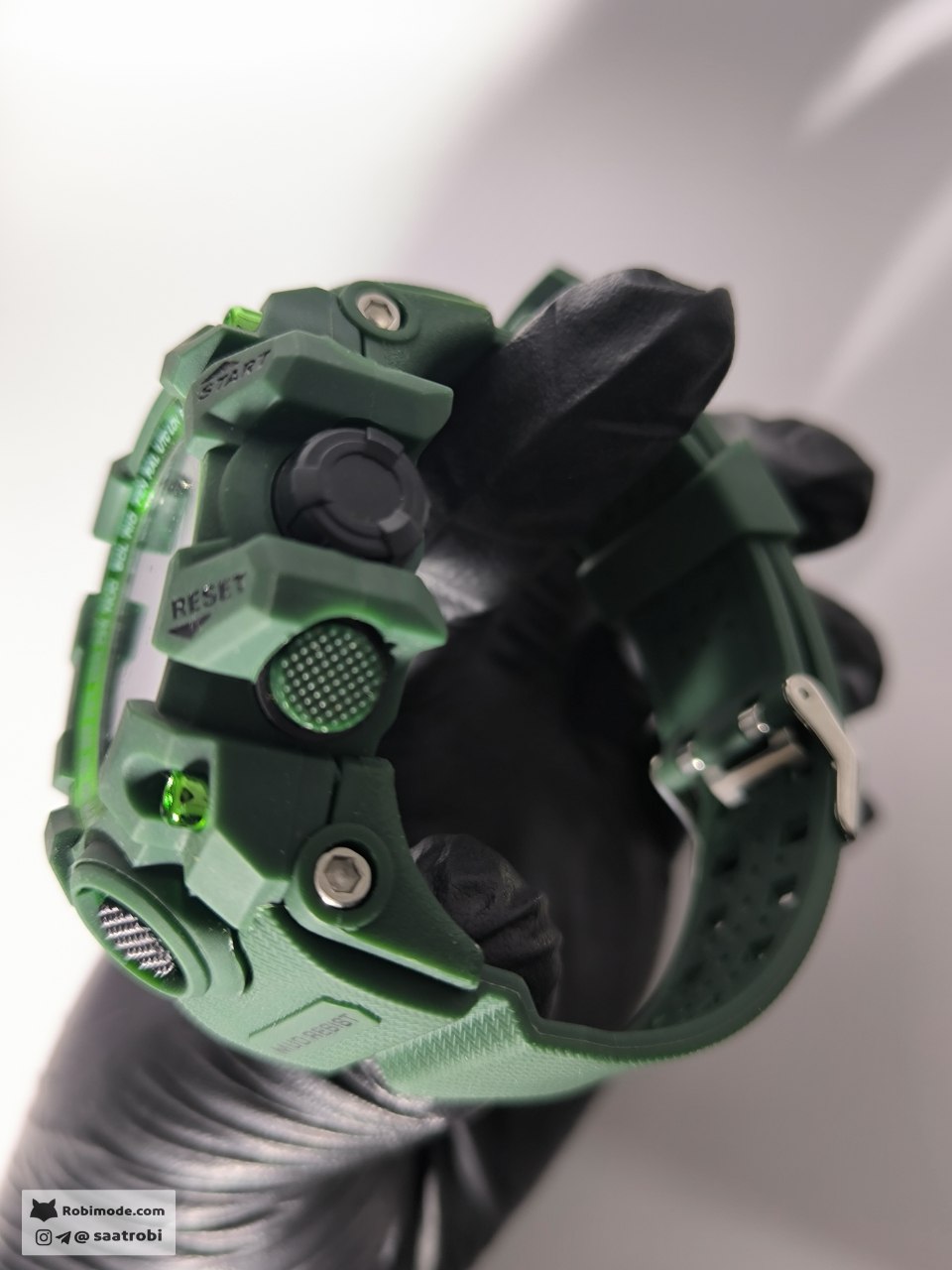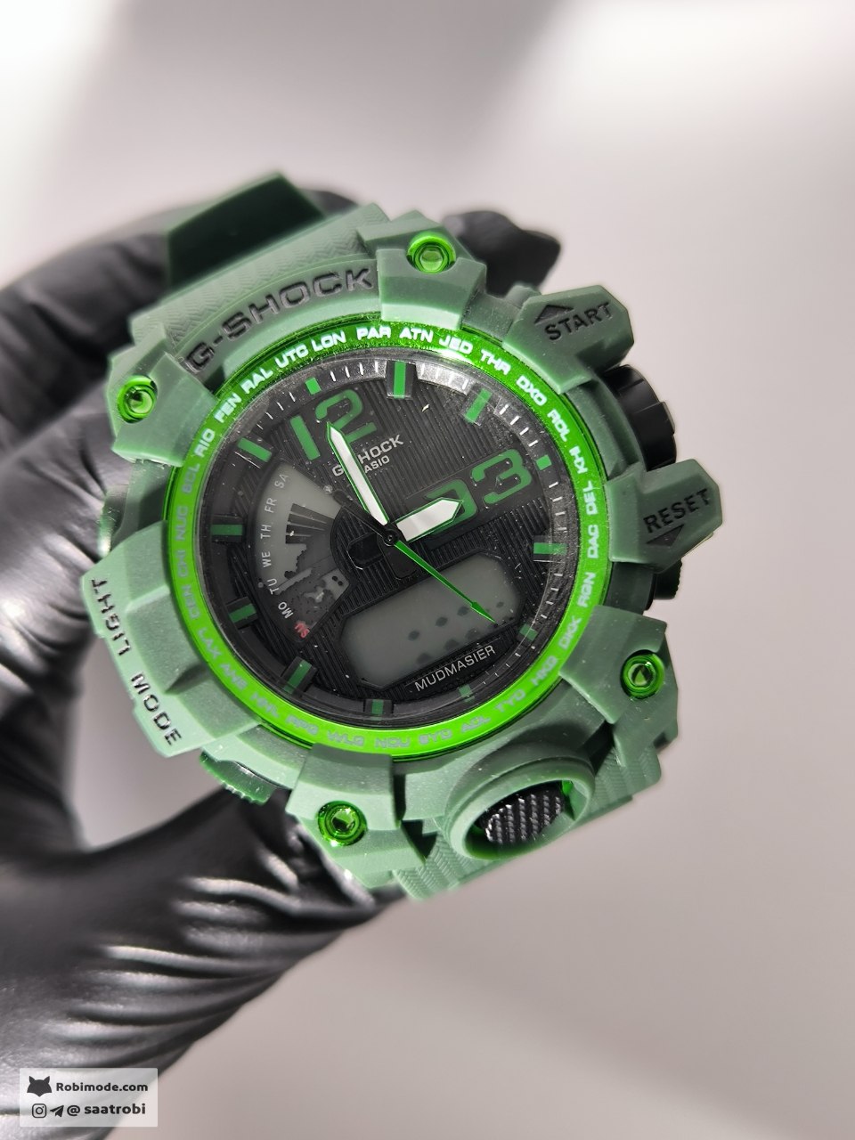 ساعت مچی کاسیو مدل جیشاک سبز لجنی با طراحی خلبانی و صفحه مشکی ترکیبی از مقاومت و استایل است. مناسب خانمها و آقایان با موتور ژاپنی دو زمانه، نمایش آنالوگ و دیجیتال، ضد آب و ضد ضربه، دارای آلارم، چراغ دیدشب، کرنومتر، نمایش کامل تاریخ و صفحه ضدخش. بند رابر آنتی آلرژی و قاب حکاکی شده با قفل و پشت قاب استیل دوام بالا را تضمین میکند. با خرید ساعت مچی جی شاک کاسیو از فروشگاه اینترنتی روبی مد، ترکیب کیفیت و زیبایی را تجربه کنید.