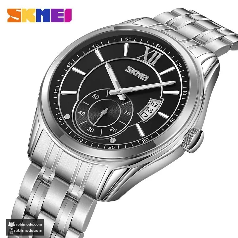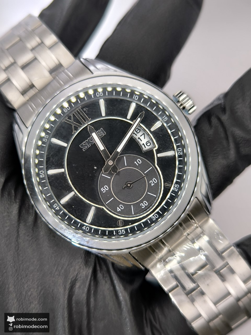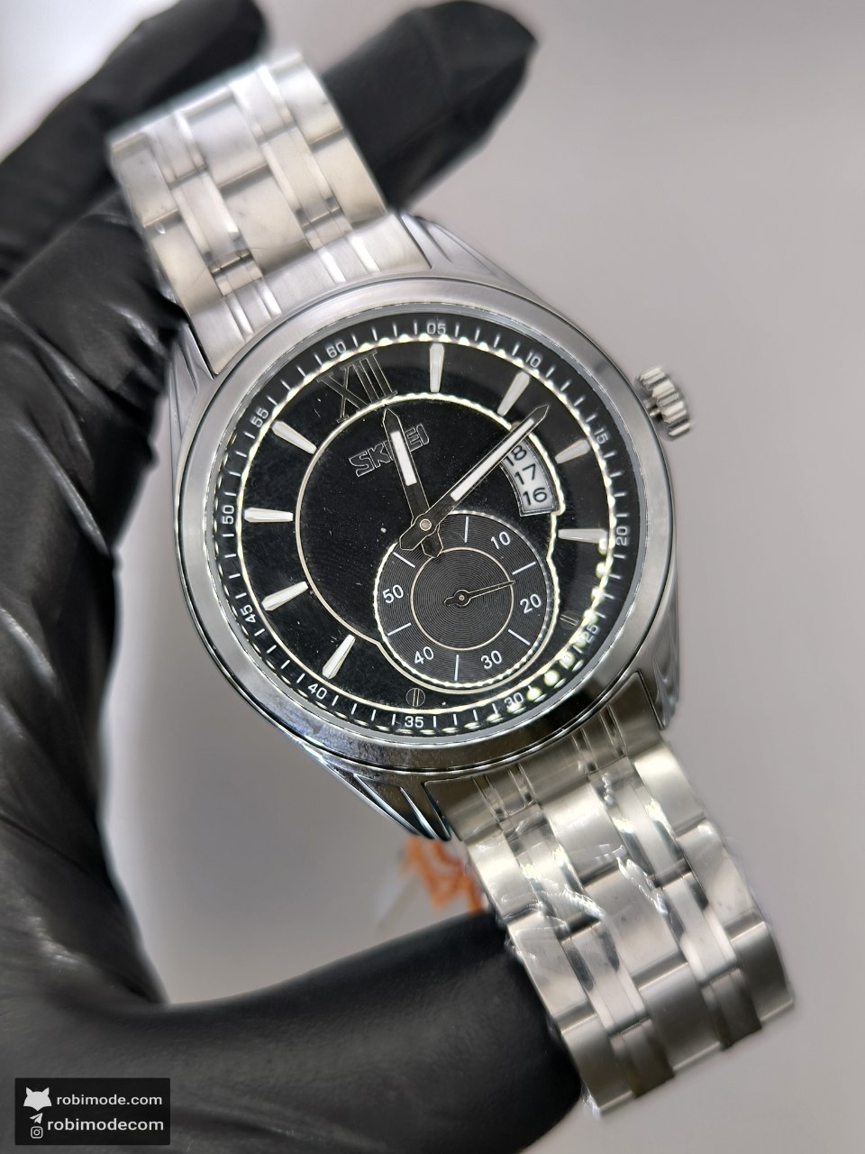 توضیحات بیشتر: ساعت مچی اسکمی مردانه SKMEI مدل 9319 ترکیبی بی‌نظیر از طراحی مدرن، عملکرد بالا و کیفیت اصل است که برای آقایان خوش‌سلیقه با استایل کژوال، لوکس، رسمی و کلاسیک طراحی شده است. این مدل از برند اصلی اسکمی با بند استیل ضد زنگ و قفل کلیپسی ضامن‌دار حس امنیت و راحتی را در استفاده روزانه به شما منتقل می‌کند. شیشه معدنی ضد خش از زیبایی ساعت در طول زمان محافظت کرده و طراحی ضد آب صد درصد آن، مناسب برای استفاده در شرایط مختلف است. این مدل همچنین با تقویم دقیق و قفل مخفی، جزئیات متفاوتی را به همراه دارد و با ضمانت ۱ ساله خیال شما را از بابت کیفیت آسوده می‌سازد.