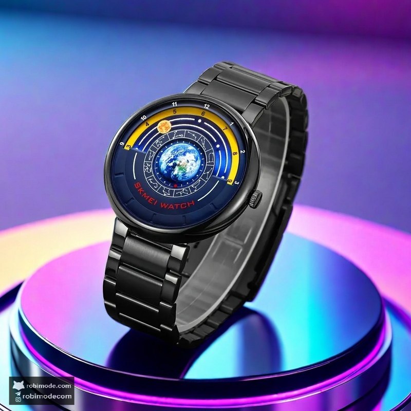 توضیحات بیشتر: اگر به دنبال ساعت مچی کهکشانی مردانه خاص و شیک هستید ساعت اسکمی SKMEI مشکی با طراحی کلکسیونی صفحه نمایش چرخشی موتور کوارتز بند استیل ضد زنگ و شیشه معدنی ضد خش انتخابی عالی از فروشگاه اینترنتی روبی مد است که با گارانتی معتبر و قابلیت ضد آب بودن گزینهای بینظیر برای استایل روزمره و رسمی شماست.