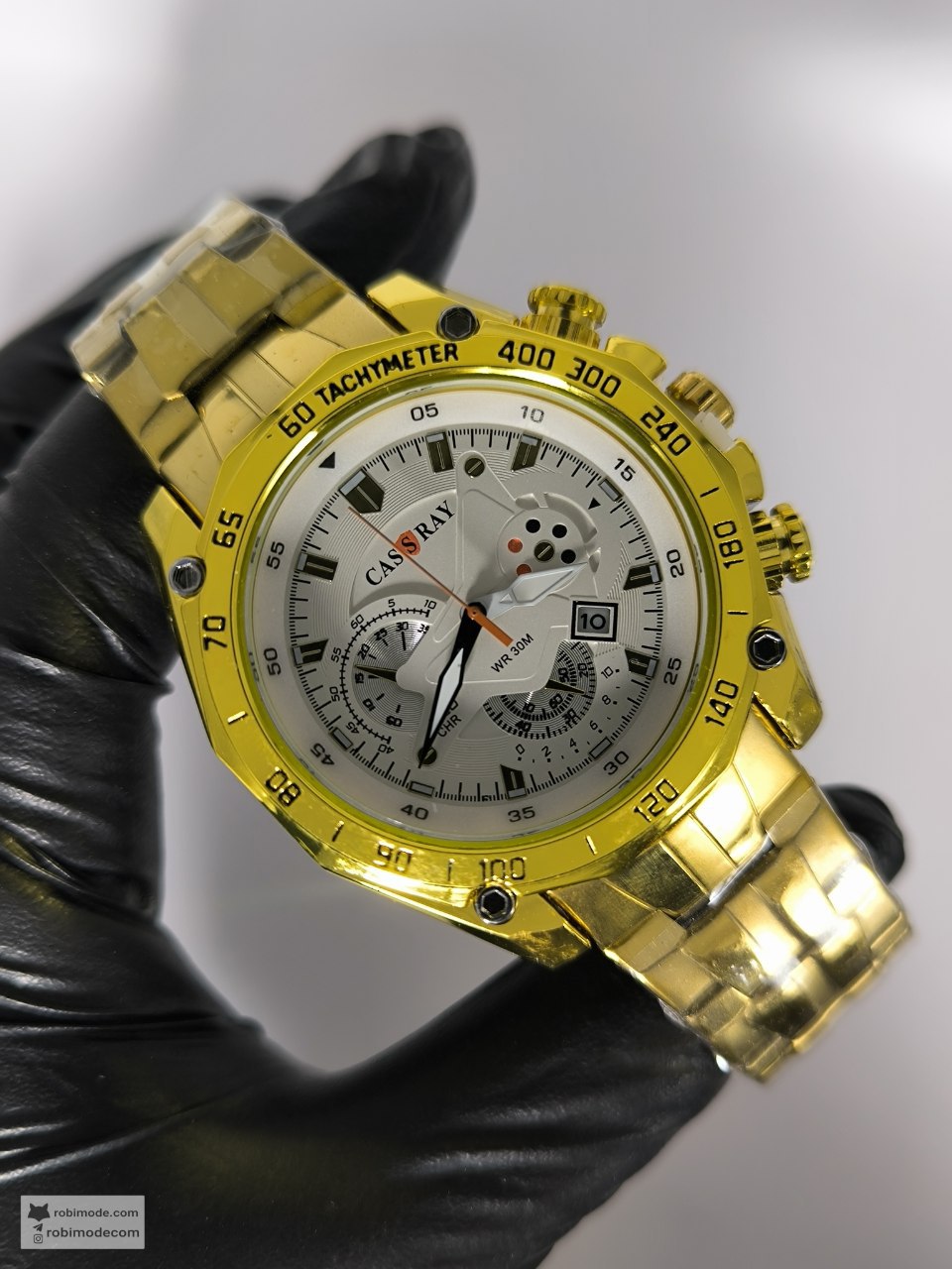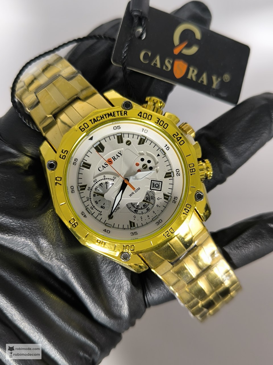 ساعت مچی مردانه بند فلزی برند کسری CASSRAY با طراحی قدرتمند و کیفیت عالی انتخابی مناسب برای آقایانی است که به دنبال دوام و زیبایی در کنار عملکرد بالا هستند این مدل با قابلیت کار سنگین رنگ ثابت و طرح سه موتور جلوهای خاص و حرفهای دارد وجود تقویم و قفل ضامن دار نیز استفاده از آن را راحتتر و ایمنتر کرده است اگر به دنبال خرید ساعت مچی مردانه بند فلزی با طراحی خاص و کیفیت بالا هستید فروشگاه اینترنتی روبی مد این مدل جذاب را با ضمانت اصالت و کیفیت در اختیار شما قرار میدهد