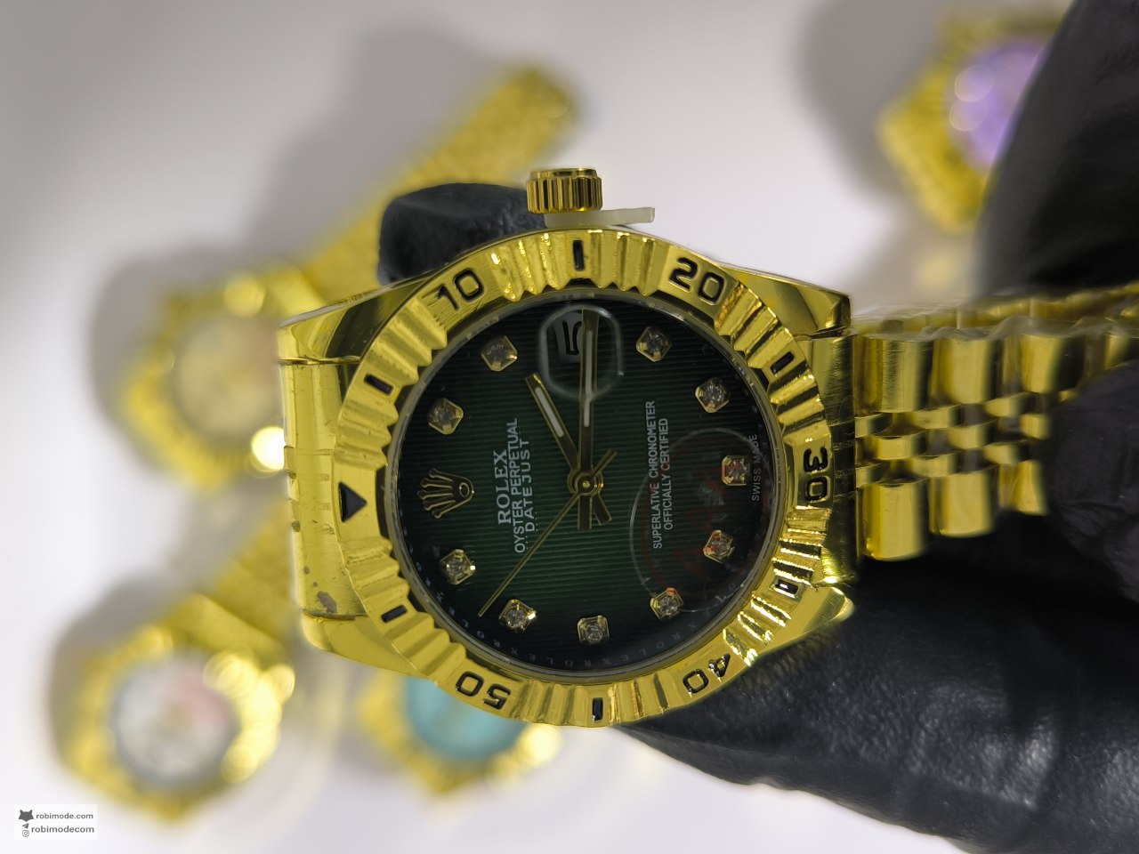 ساعت مچی زنانه رولکس دیت جاست AAA با بالاترین گرید کیفیت انتخابی لوکس و خاص برای بانوان خوشسلیقه است این ساعت رولکس زنانه دارای پشت و سرکوک رولکسی صفحه برجسته و تقویم تلسکوپی بوده و با قابلیت روزشمار و قفل کلیپسی راحتی و عملکرد دقیق را ارائه میدهد رنگ ثابت صد درصد تضمینی و واشر بندی حرفهای دوام و زیبایی آن را تضمین میکند فروشگاه اینترنتی روبی مد این مدل خاص را با کیفیت AAA و قیمت مناسب عرضه میکند تا تجربهای متفاوت از ساعتهای زنانه داشته باشید.