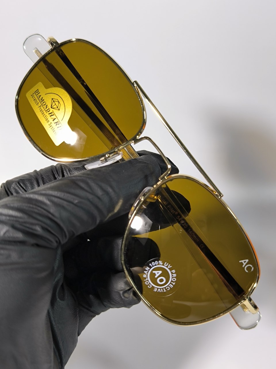 عینک آفتابی خلبانی مردانه برند آمریکایی AO لنز قهوه ای