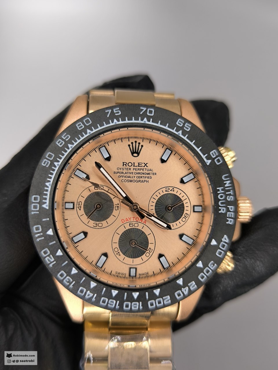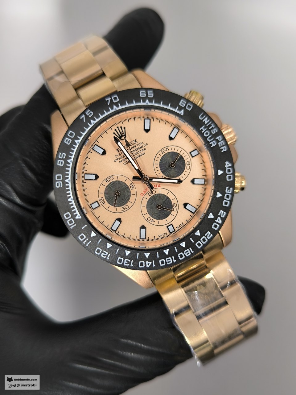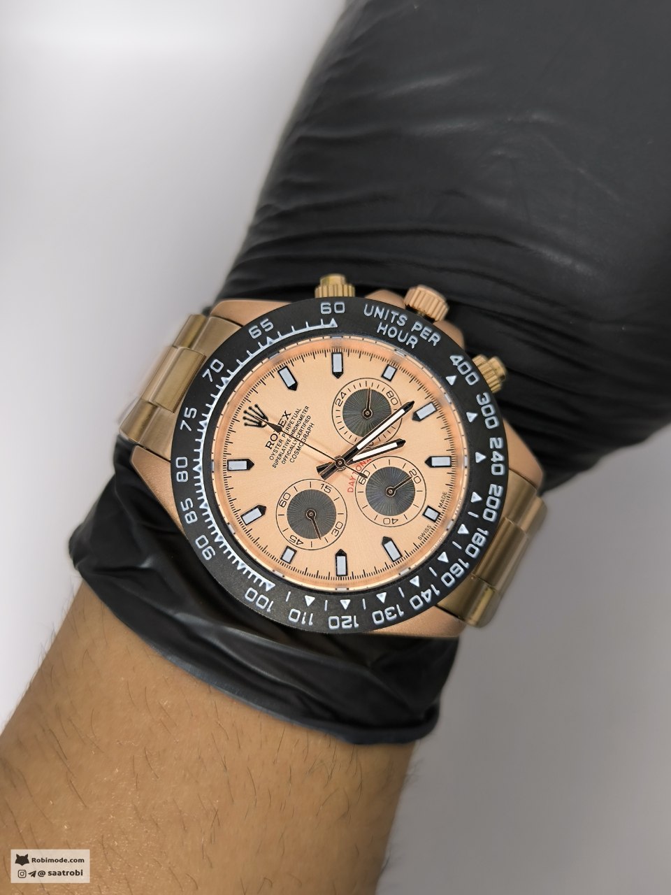 ساعت مردانه رولکس ROLEX رزگلد ترکیبی از ظرافت و عملکرد حرفهای است که با طراحی قاب کربنی و بند استیل جلوهای خاص به استایل شما میبخشد این مدل با شیشه کریستال مقاوم و قابلیتهای پیشرفتهای مثل کرنوگراف تاچیمتر و روزشمار انتخابی بینقص برای آقایان خوشسلیقه محسوب میشود قفل رولکسی دوگانه امنیت و راحتی را همزمان فراهم کرده و همه این ویژگیها را میتوانید از فروشگاه اینترنتی روبی مد تهیه کنید جایی که کیفیت و اصالت حرف اول را میزند.