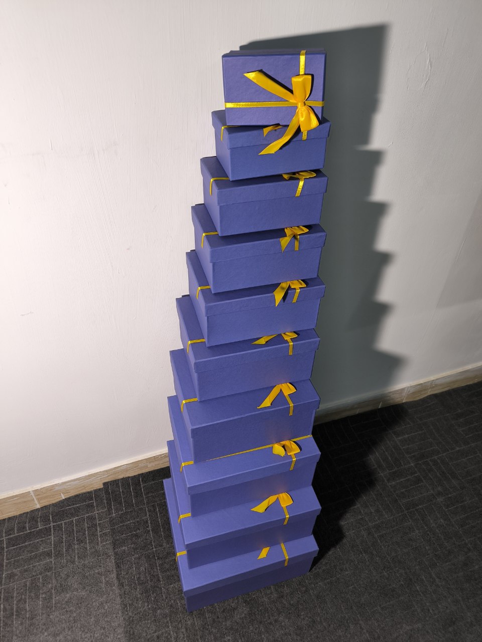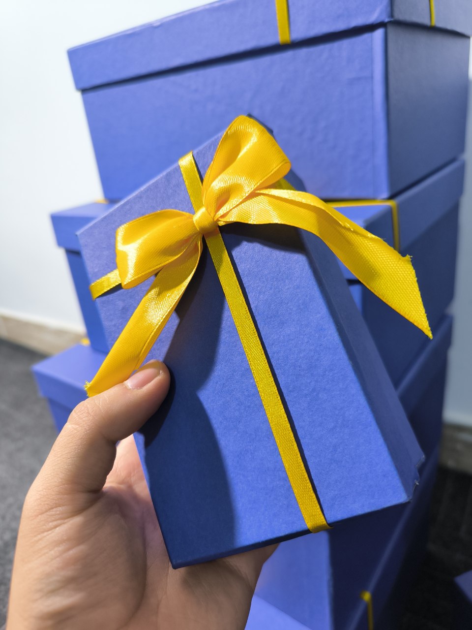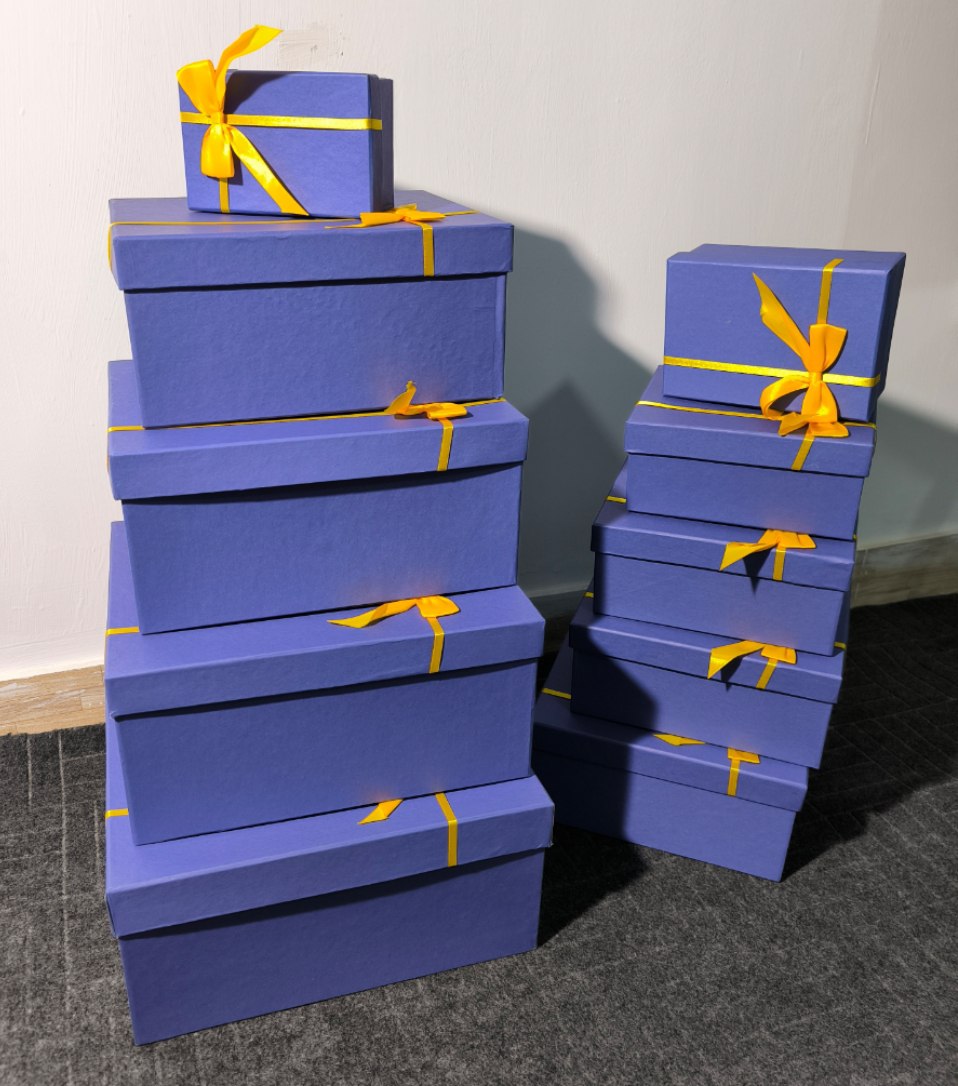 جعبه کادویی آبی ربان طلایی در ده سایز مختلف