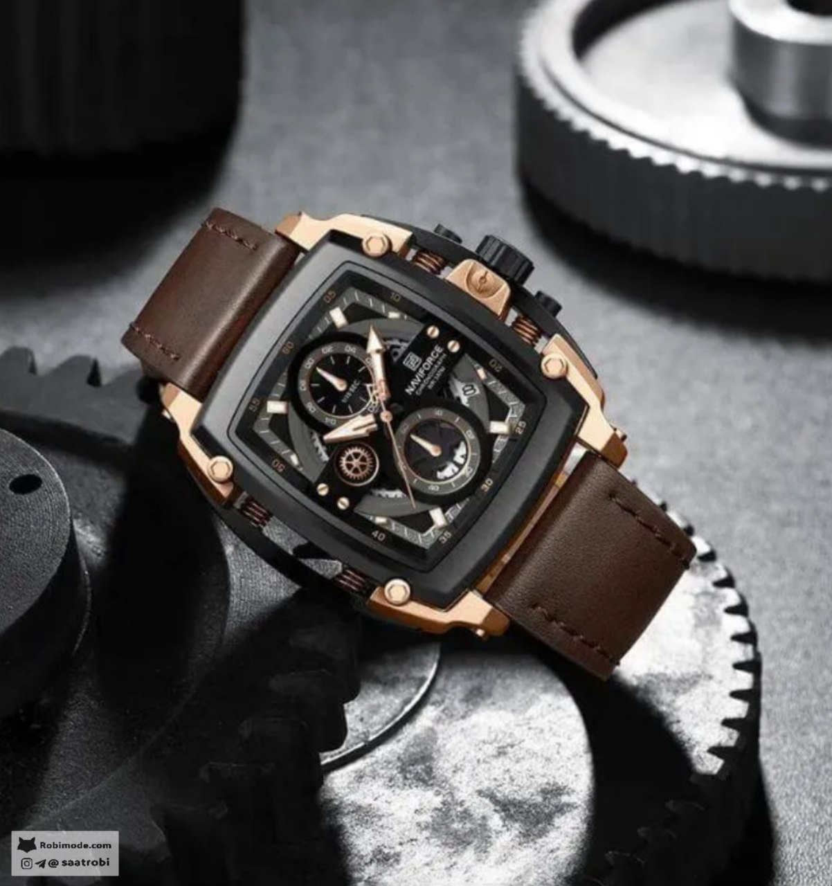 ساعت مردانه نیوی فورس مدل NF8067 انتخابی شیک و قدرتمند برای آقایانیست که به استایل و کیفیت اهمیت میدهند این مدل با طراحی سه موتوره کرنوگراف و موتور کوارتز دقیق، عملکردی بینقص را در کنار ظاهری جذاب ارائه میدهد بدنه مقاوم با شیشه معدنی ضد خش، بند چرمی با قفل سگکی و رنگ ثابت، همگی نشان از دوام و اصالت این ساعت دارند همچنین خاصیت ضد آب بودن آن، استفاده روزمره را بدون نگرانی ممکن میسازد این محصول ارجینال بوده و همراه با کارت گارانتی و جعبه رسمی از طریق فروشگاه اینترنتی روبی مد عرضه میشودبرند نیوی فورس با تمرکز بر طراحی مدرن و کیفیت بالا، در سالهای اخیر به یکی از برندهای محبوب در زمینه ساعتهای مردانه تبدیل شده است ترکیب زیبایی، عملکرد و قیمت مناسب باعث شده تا نیوی فورس انتخاب اول بسیاری از علاقهمندان به ساعت باشد.