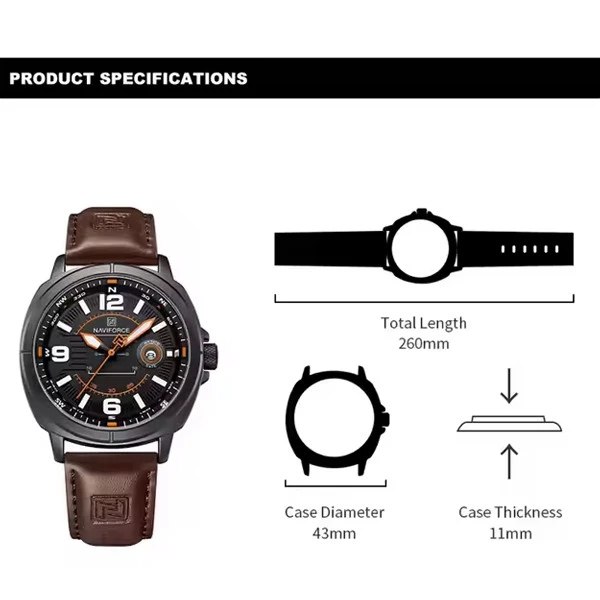 ساعت مچی عقربه ای مردانه نیوی فورس مدل Nf8078 یکی از انتخابهای خاص و باکیفیت برای آقایان خوشاستایل است برند نیوی فورس با طراحیهای مدرن و دوام بالا در ساخت ساعتهای اسپرت و کلاسیک شناخته میشود و در بین جوانان محبوبیت زیادی دارد این مدل با موتور کوارتز دقیق، تقویم روزانه، بند چرمی دور دوخت ضد تعریق، شیشه معدنی مقاوم، رنگ ثابت و قفل سگکی عرضه میشود همچنین کاملاً ضد آب بوده و بهصورت اورجینال همراه با کارت گارانتی و جعبه اصلی ارائه میگردد برای تهیه این ساعت خاص و جذاب کافیست به فروشگاه اینترنتی روبی مد مراجعه کنید و استایل خود را به سطحی حرفهایتر ارتقا دهید.