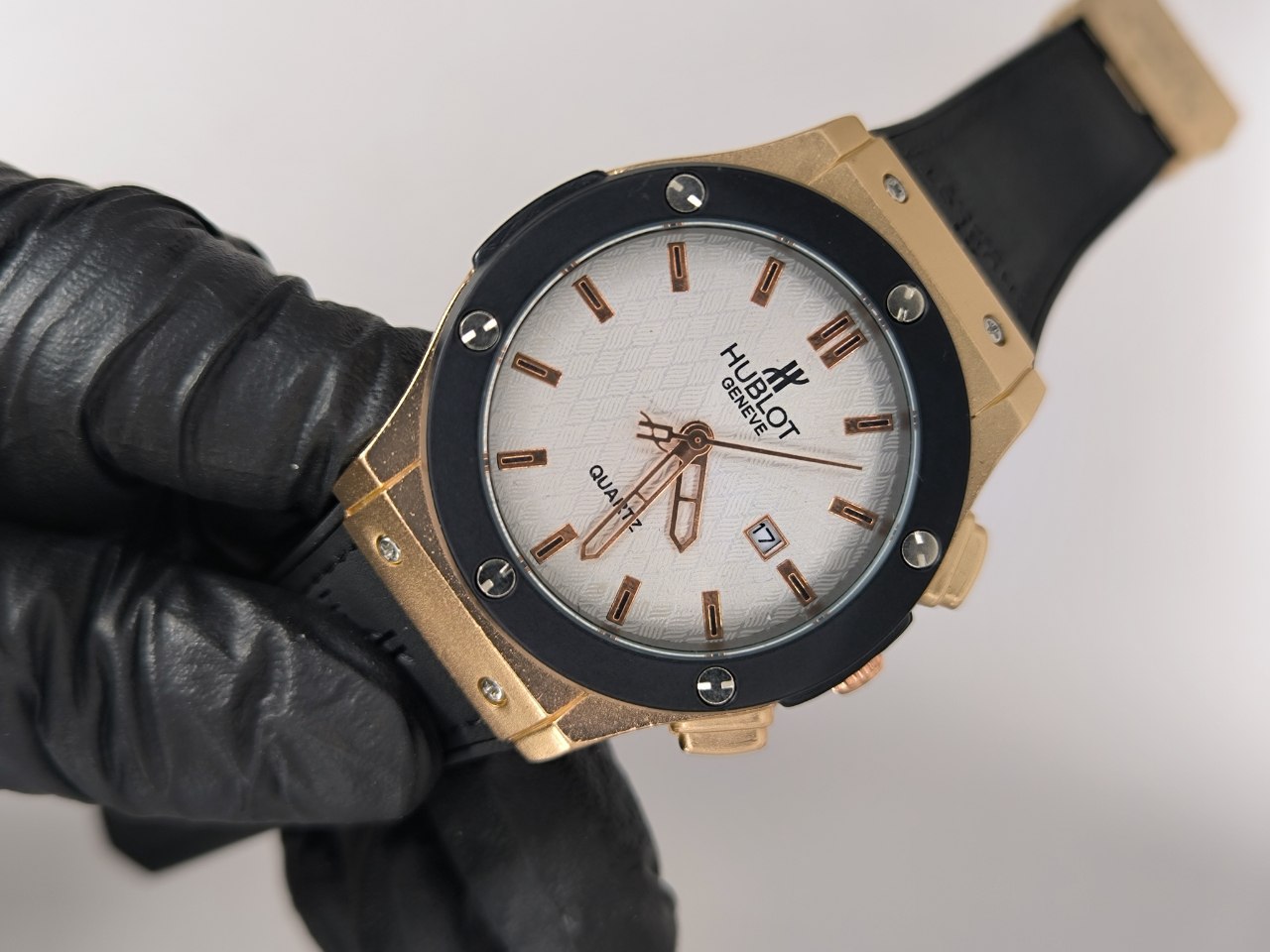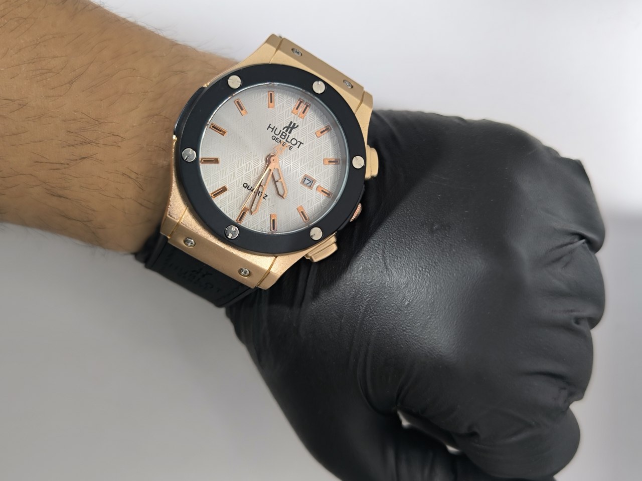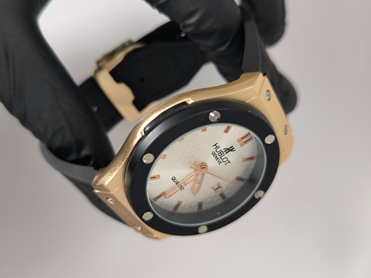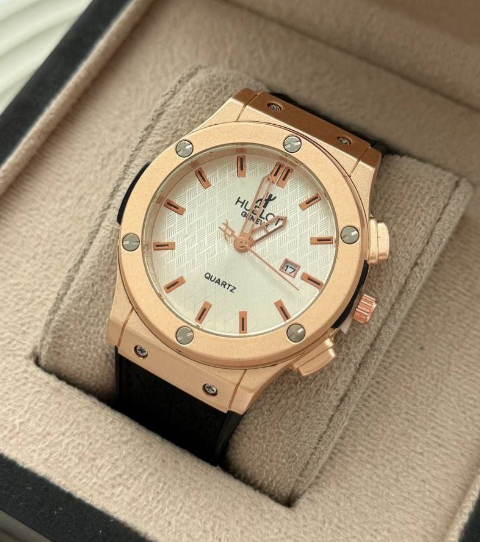 ساعت مردانه هابلوت HUBLOT با بند رابر درجه یک انتخابی خاص برای آقایانیست که به استایل و کیفیت اهمیت میدهند طراحی دور دوخت و قفل ضامندار جدید با حکاکی ظریف روی قفل جلوهای لوکس به این مدل بخشیده است این ساعت علاوه بر ظاهر جذاب دارای قابلیت تقویم و مقاومت در برابر آب نیز هست برای خرید این محصول خاص به فروشگاه اینترنتی روبی مد مراجعه کنید و تجربهای متفاوت از ساعتمچی را رقم بزنید.