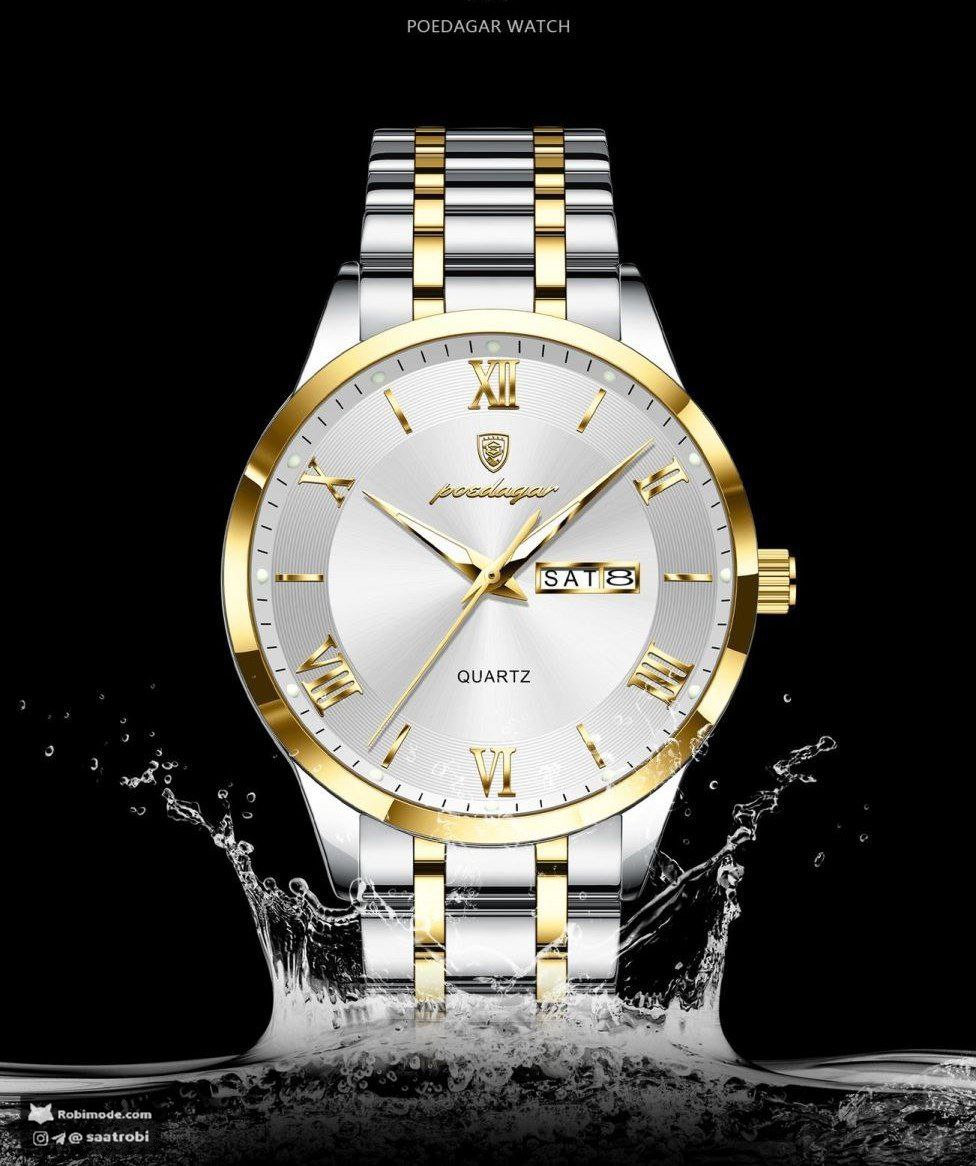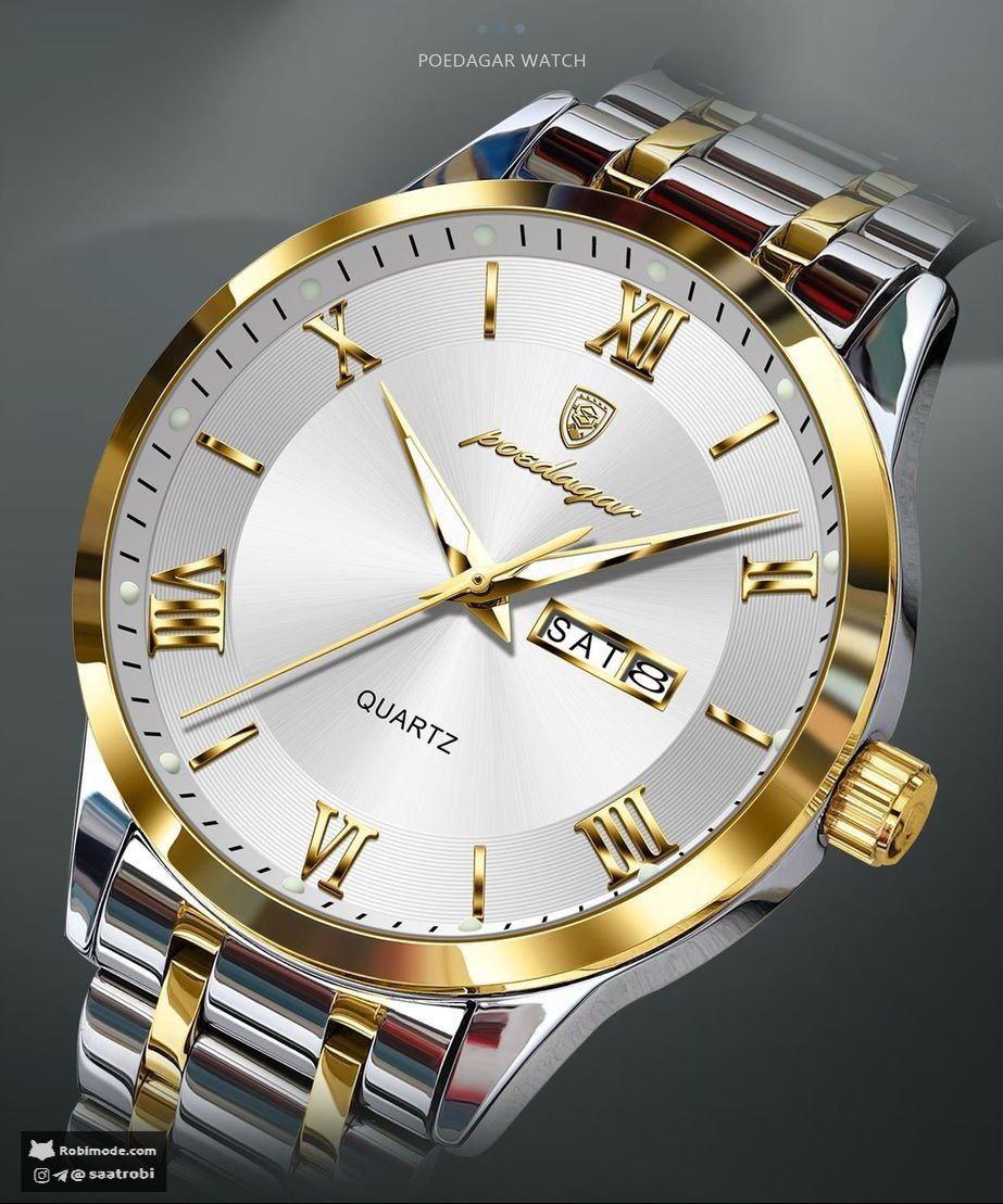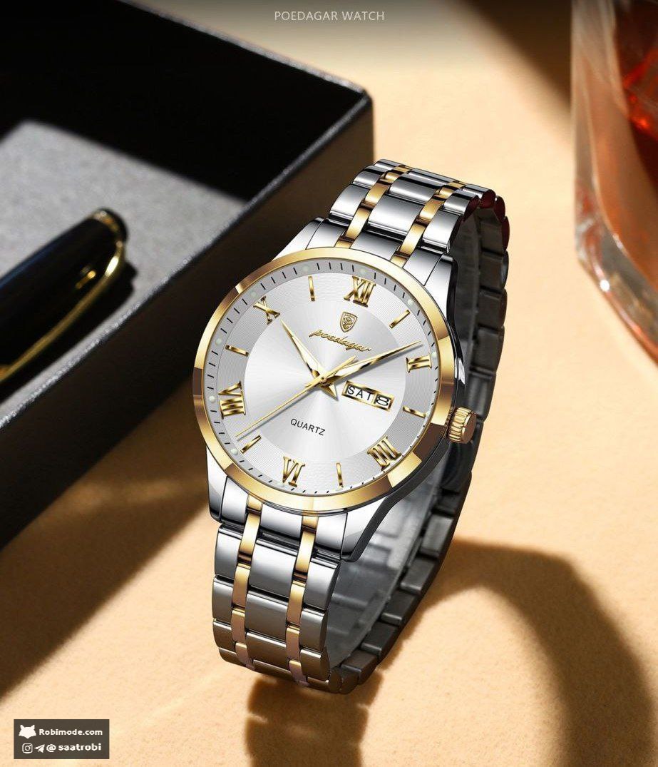 ساعت مچی مردانه پوداگار الماسی مدل poedagar 2025 با طراحی لوکس و قاب کریستال یاقوت کبود انتخابی خاص برای آقایان خوشسلیقه است این مدل شرکتی با بند استیل و موتور کوارتز دقیق دارای روزشمار و نمایش ایام هفته بوده و صفحه شبنمای آن در تاریکی نیز خواناست قطر صفحه ۴۲ میلیمتر و شیشه معدنی مقاوم در برابر خطوخش همراه با قفل سگک دوپروانهای راحتی و دوام را تضمین میکند این ساعت ضدآب تا عمق بالا و با رنگ ثابت از طریق فروشگاه اینترنتی روبی مد با ضمانت اصالت عرضه میشود.