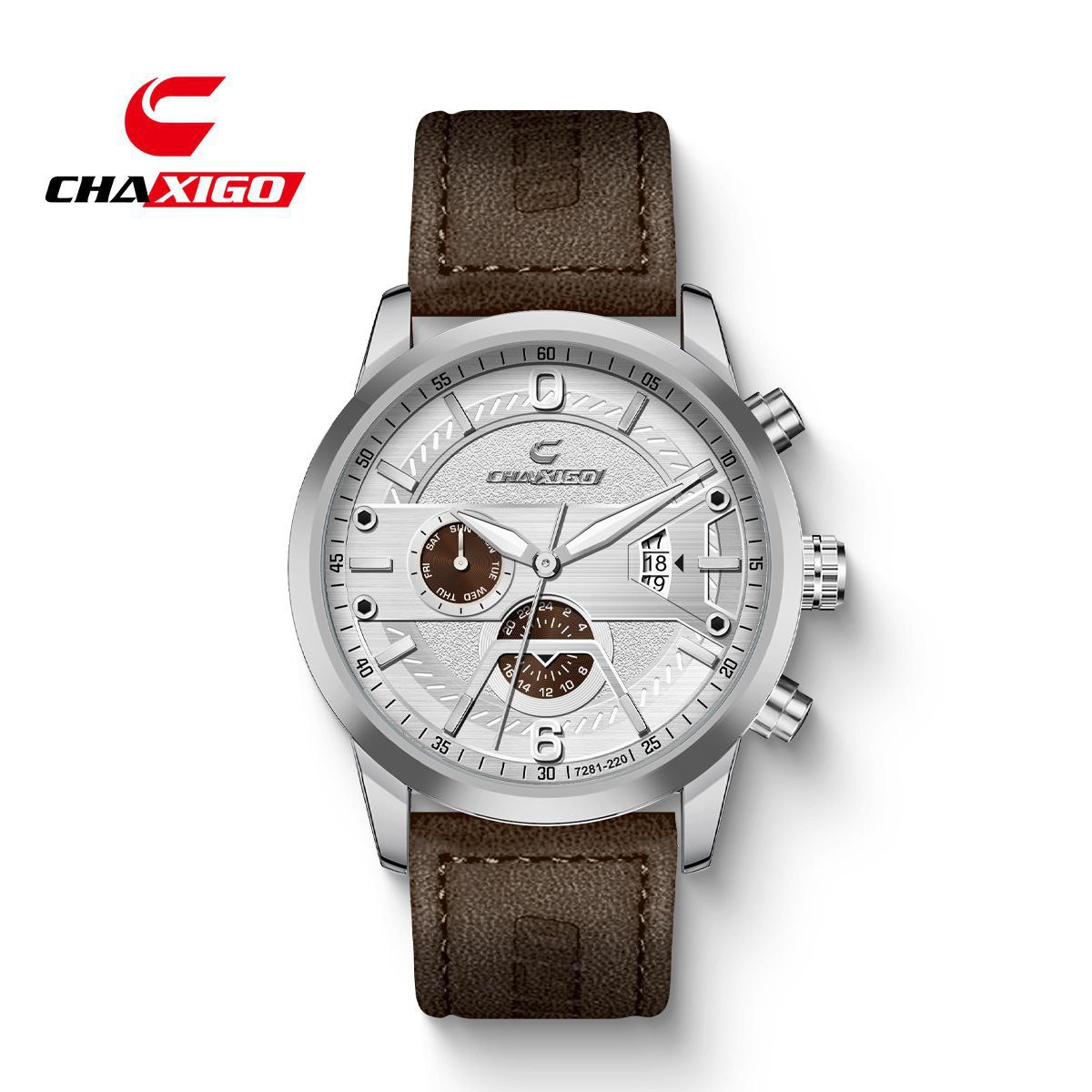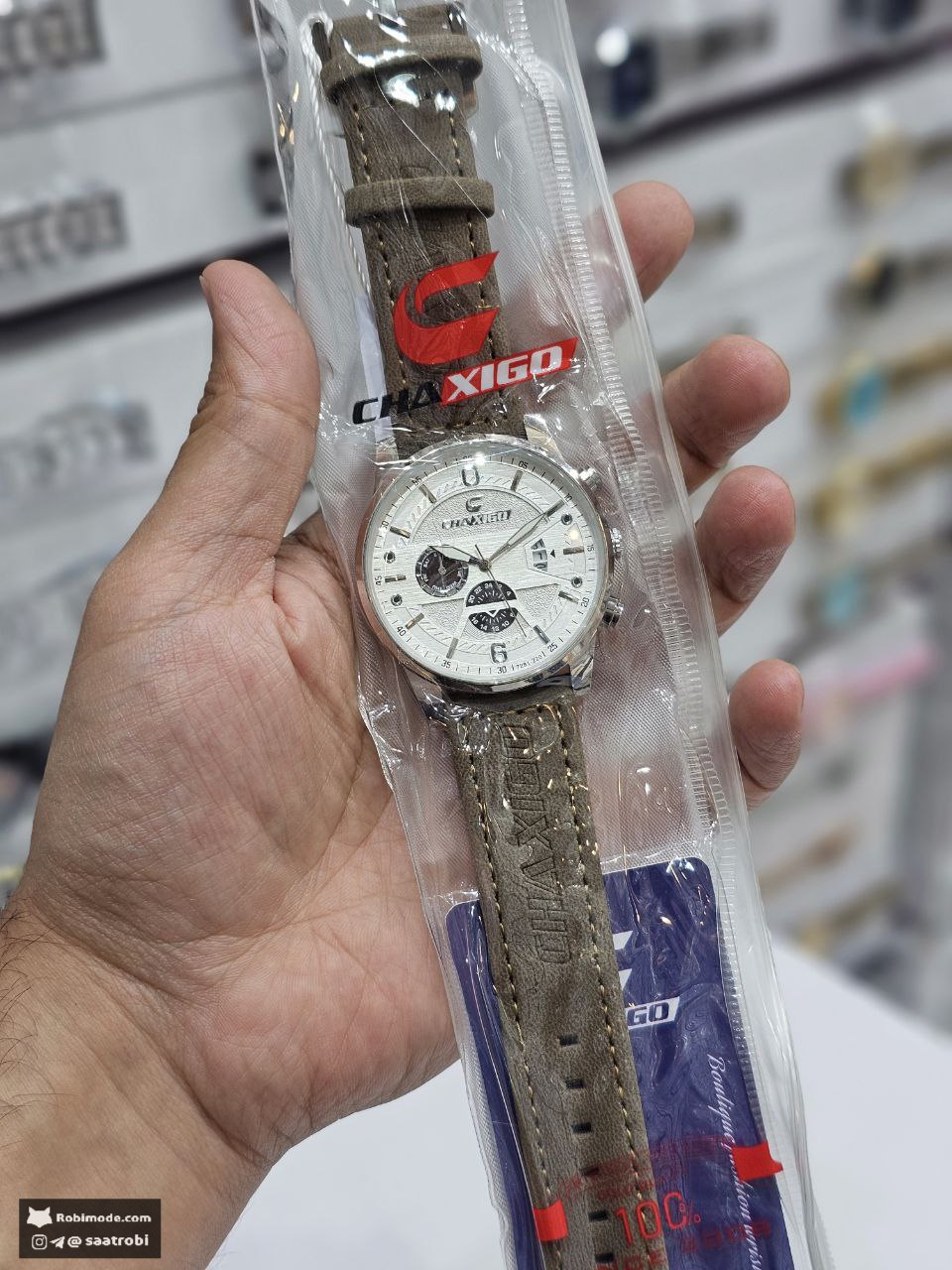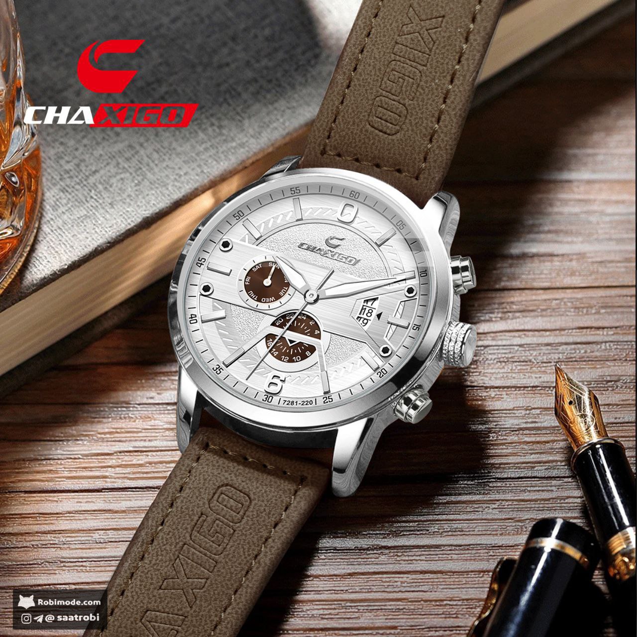 ساعت مچی مردانه چاکسیگو دژاوو CHAXIGO 🏷️قیمت تخفیفی 1250 (ارسال رایگان) ❌ قیمت فروشگاه های دیگر 1600+م🌈 بند چرم قهوه ای صفحه سفید ▫️دارای کارت گارانتی ▫️روز شمار▫️ طرح کرنوگراف▫️برند شرکتی ▫️کیفیت عالی ▫️بند چرمی▫️ضخامت ۱۱ میلی متر▫️قطر صفحه ۴۳ میل▫️ضدآب ▫️شیشه معدنی▫️رنگ ثابت ▫️قفل کمربندی ▫️موتور کوارتز ☑️ سبک جدید و مدرن از یک برند لاکچری