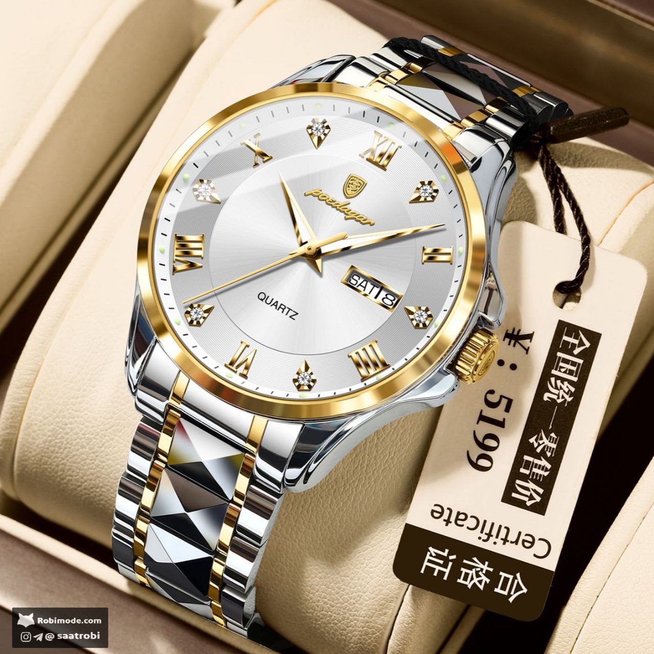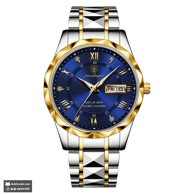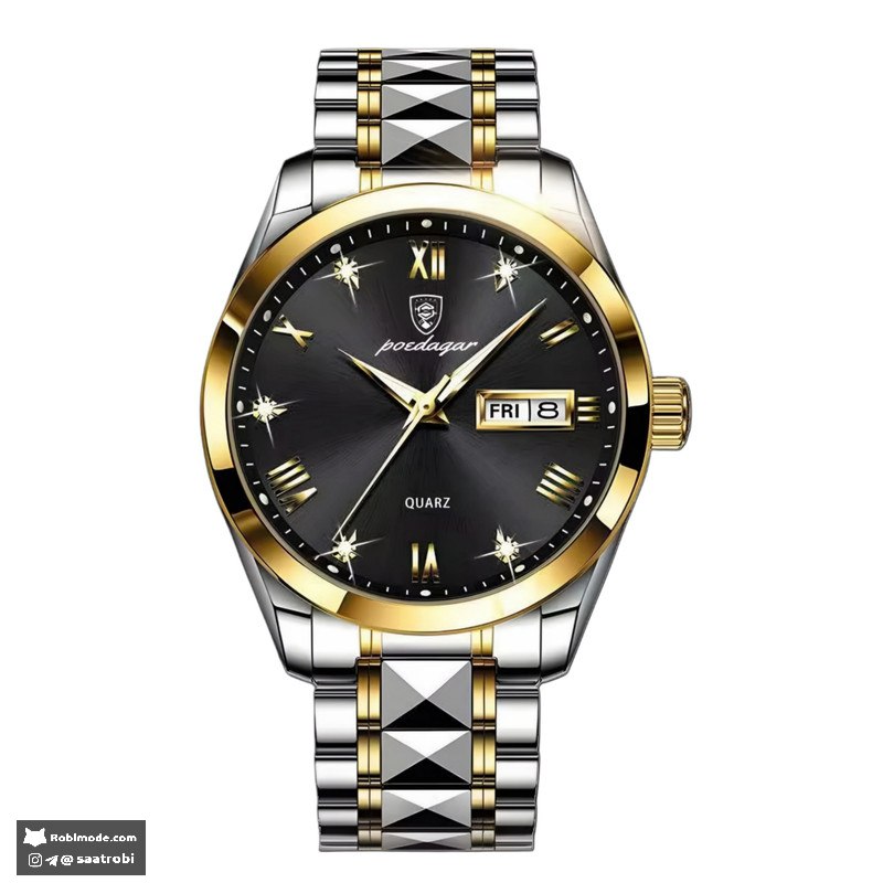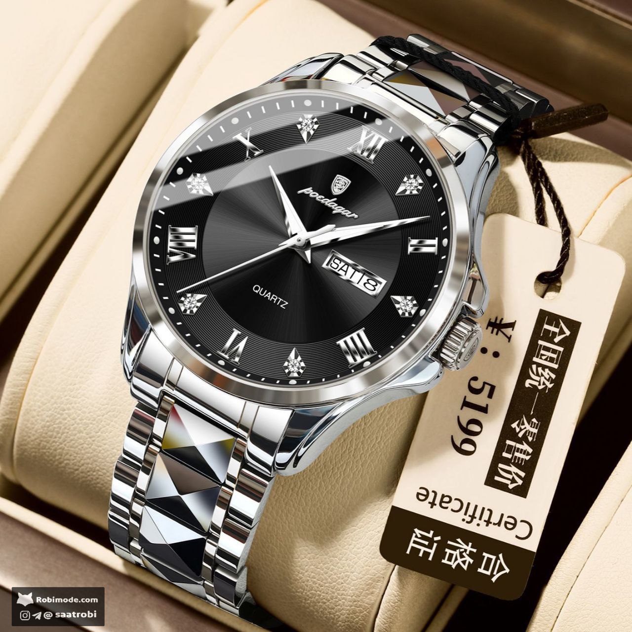 ساعت مچی ارجینال مردانه پوداگار الماسی poedagar 2025 انتخابی لوکس و شرکتی برای آقایانی که به جزئیات اهمیت میدهند طراحی خاص با قاب کریستال یاقوت کبود و صفحه ۴۲ میلیمتری با شیشه معدنی مقاوم بند استیل با قفل سگک دوپروانهای راحتی و امنیت را همزمان فراهم میکند دارای موتور کوارتز دقیق صفحه شبنما نمایش روز شمار و ایام هفته ضدآب تا عمق بالا با رنگ ثابت و ماندگار این مدل خاص را از فروشگاه اینترنتی روبی مد تهیه کنید و تفاوت را احساس کنید.